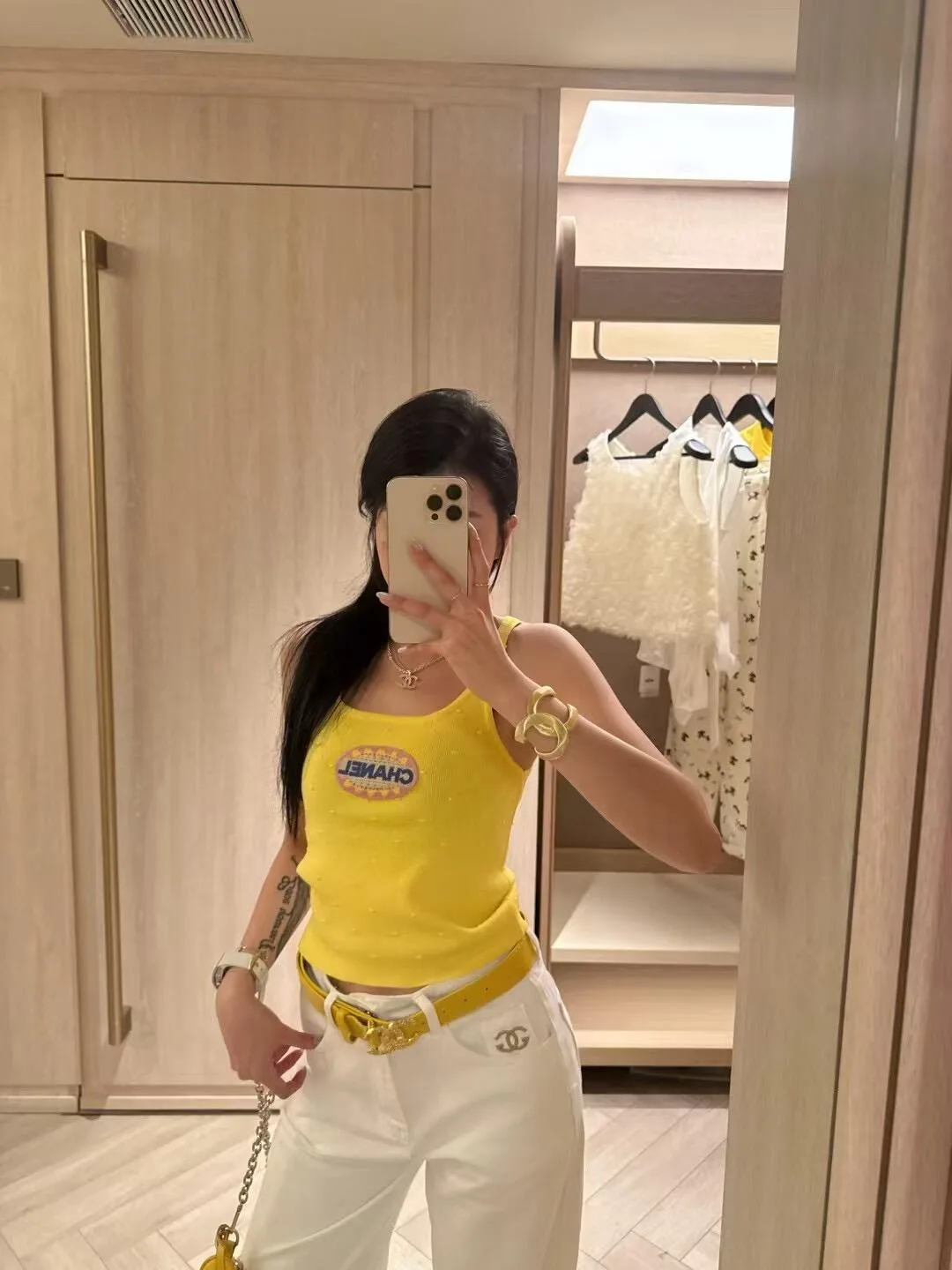 Luxus Chanel Weste Gelb Strick Bestickt Luxus