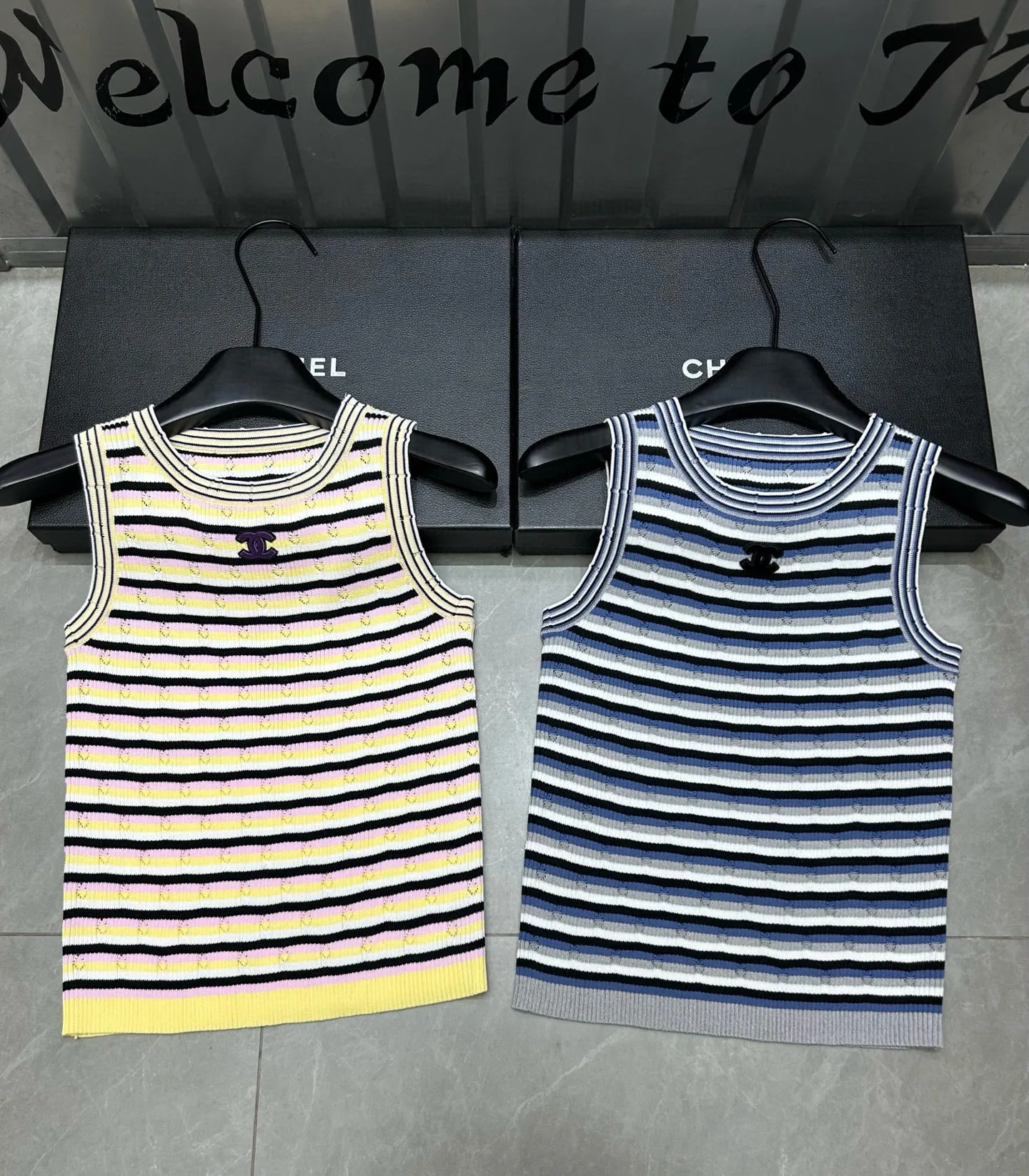 Luxus Chanel Weste Gelb Strick Gestreift Kollektion