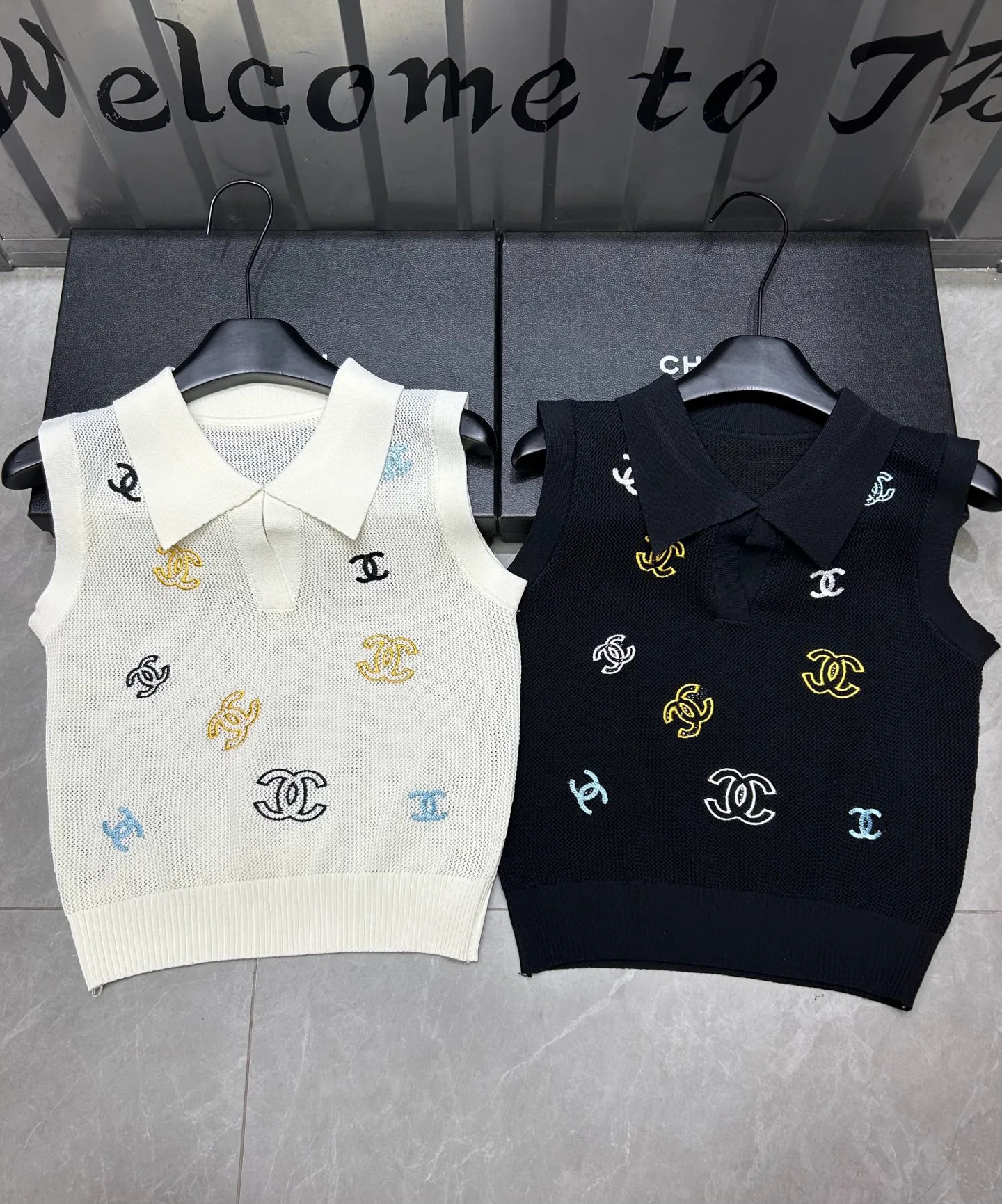 Luxus Chanel Weste Schwarz Strick Bestickt Luxus