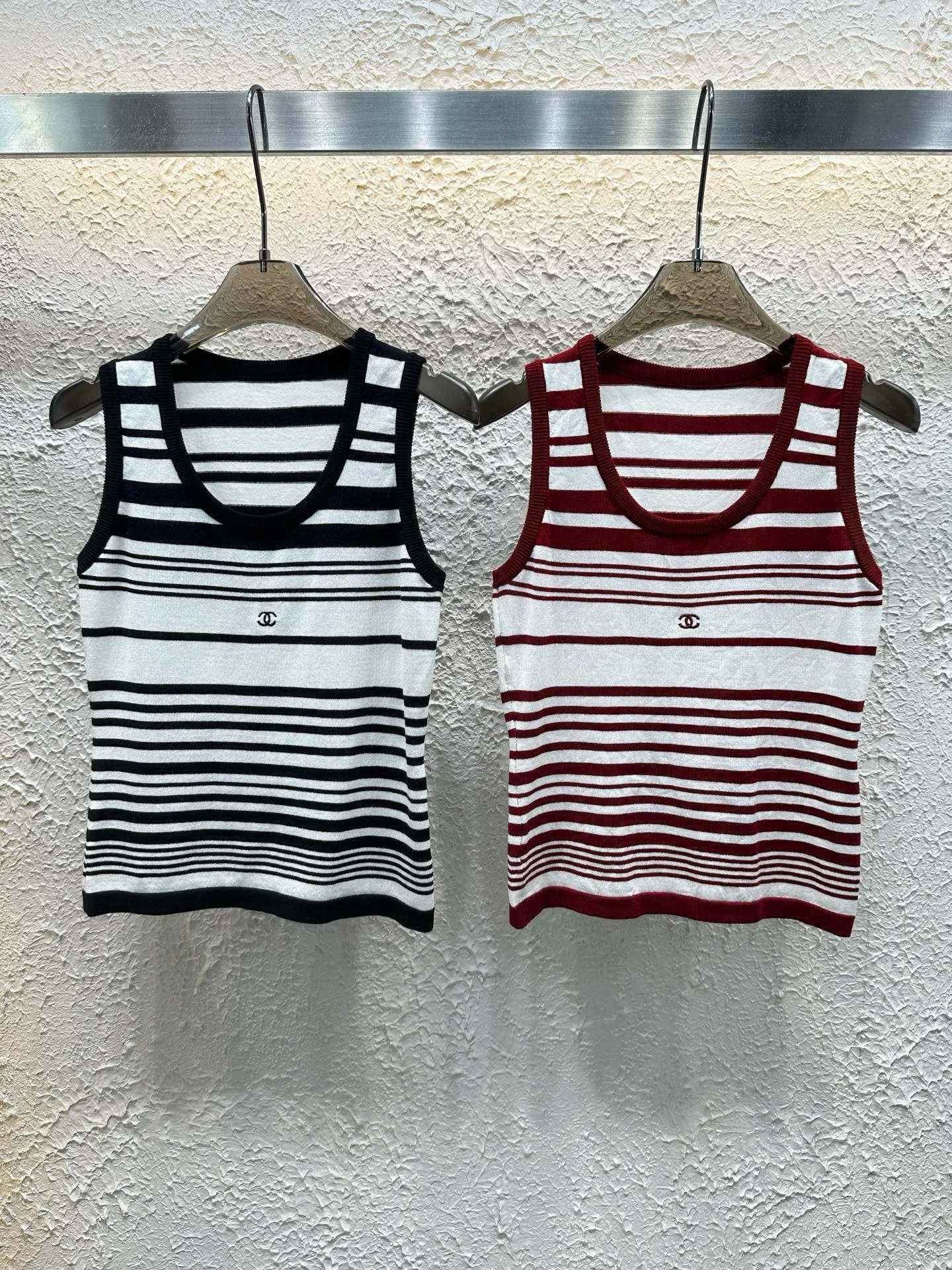 Chanel Strickweste mit Doppel-C-Stickerei und gestreiftem Colorblock-Muster