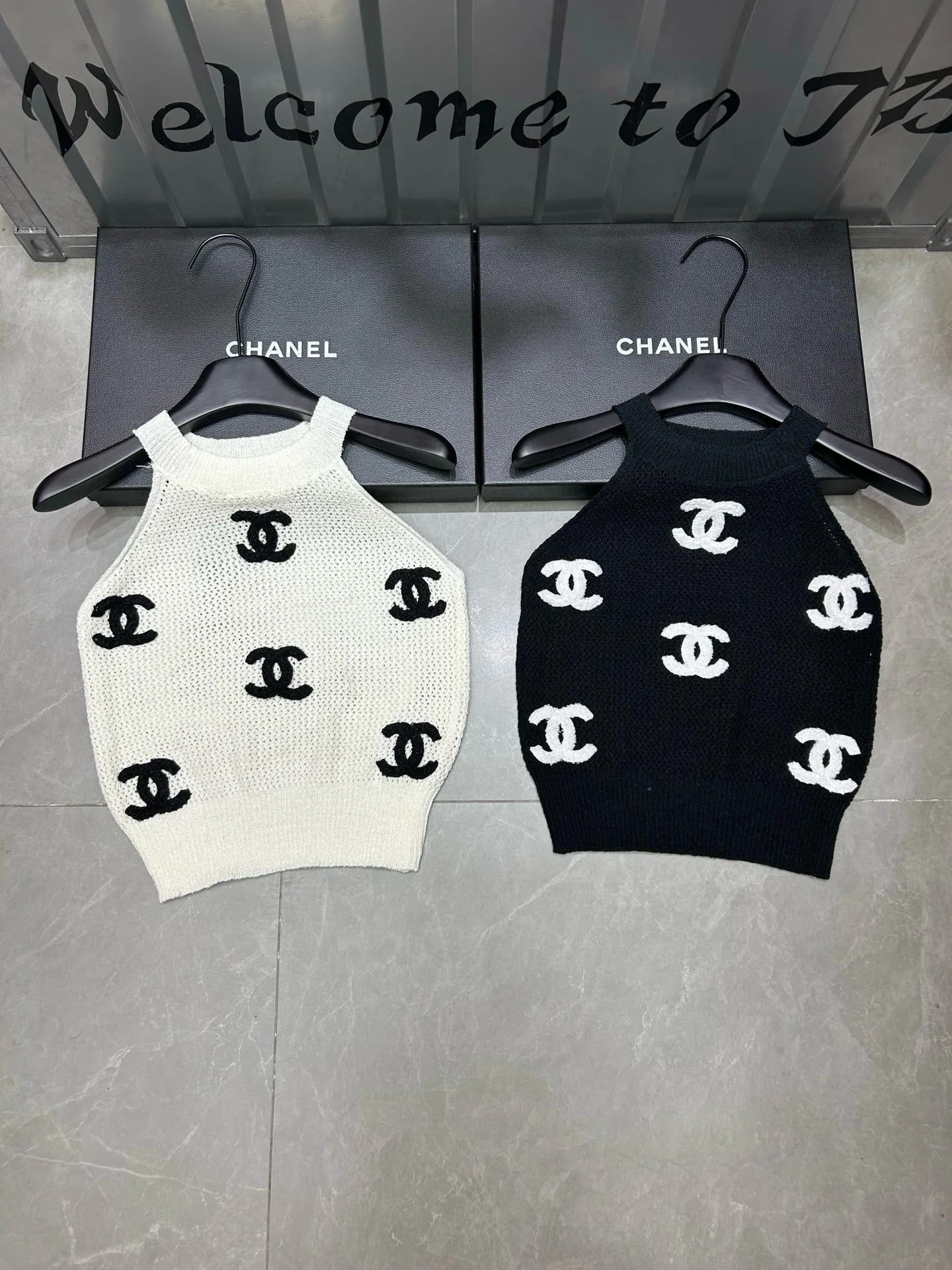 Chanel Neckholder-Tanktop mit 3D-Doppel-C-Stickerei und Hohlstrick