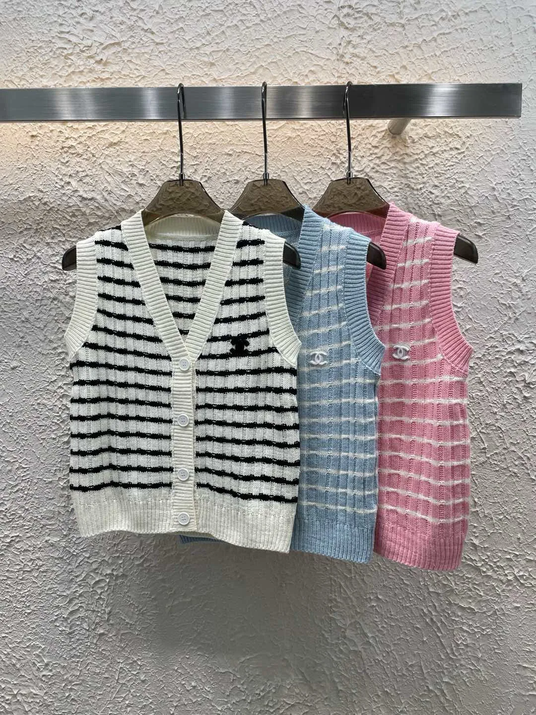 Luxus Chanel Weste Weiß Strick Bestickt Luxus