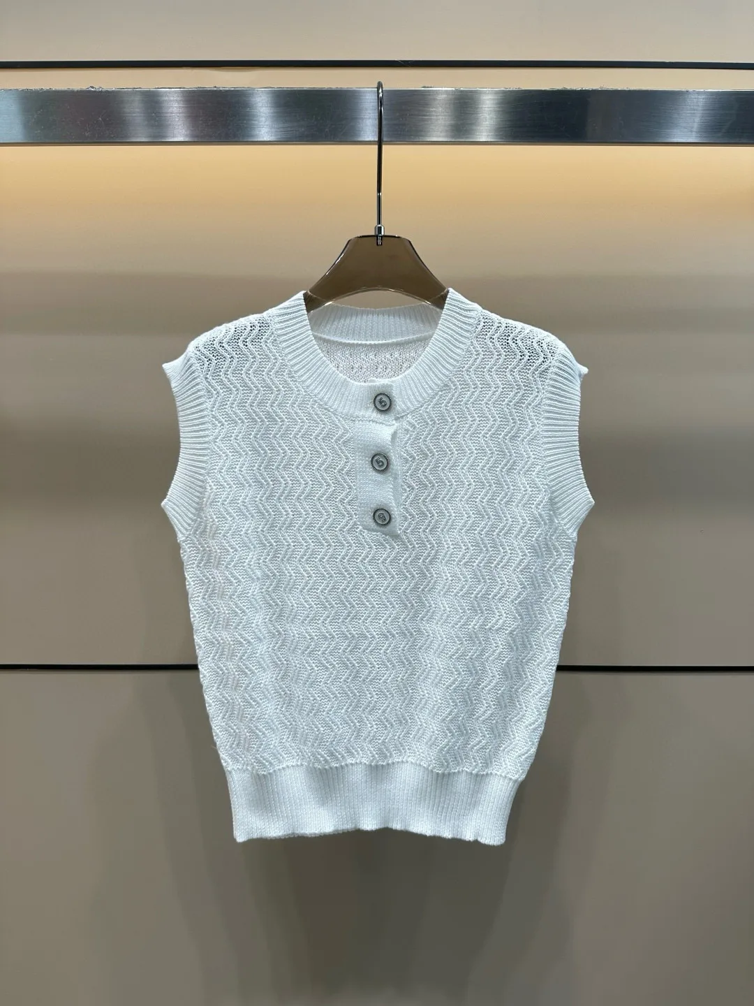 Luxus Chanel Weste Weiß Strick Logo Luxus