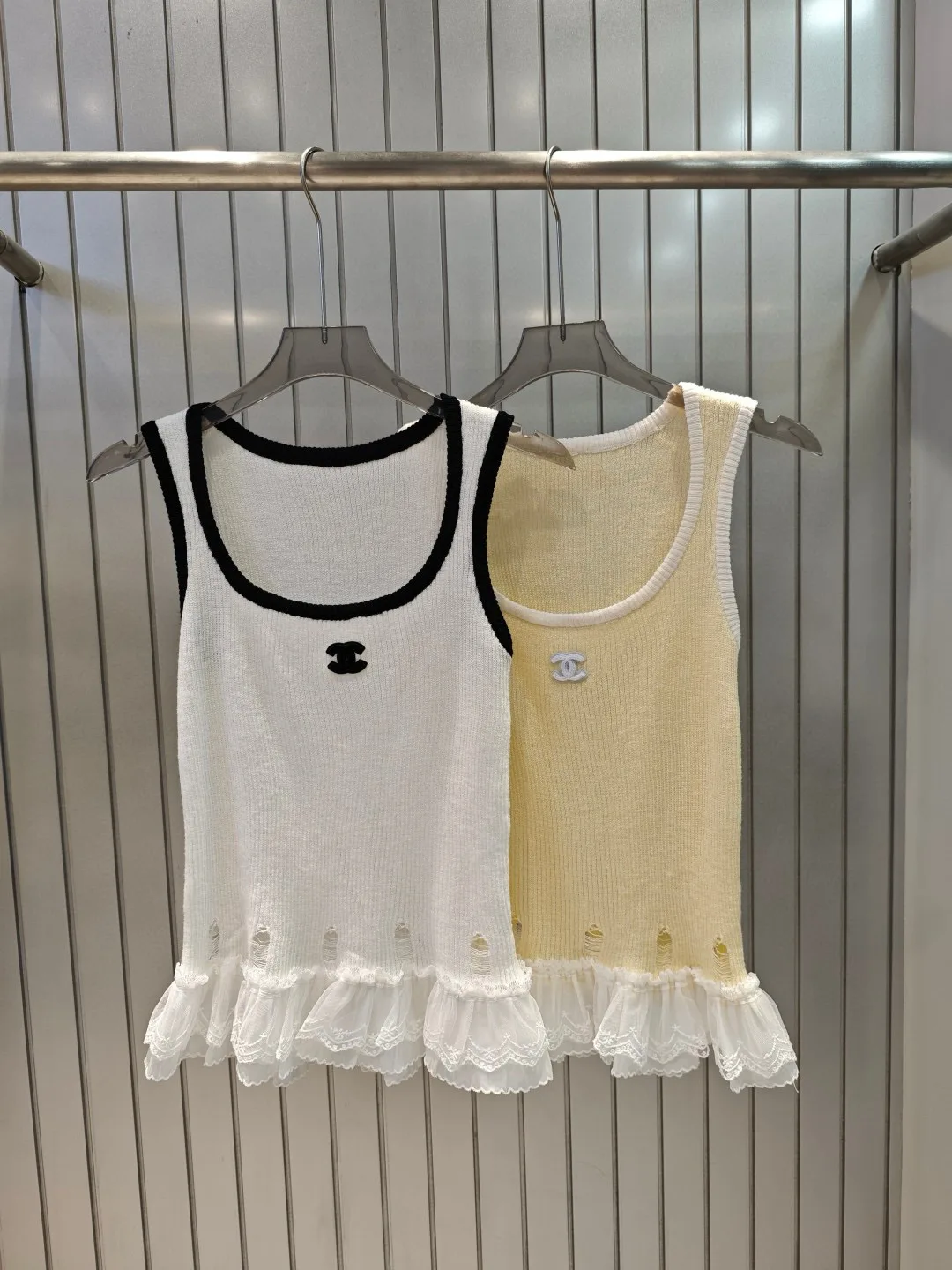 Chanel Strickweste mit Doppel-C-Muster und ausgefranstem Spitzensaum