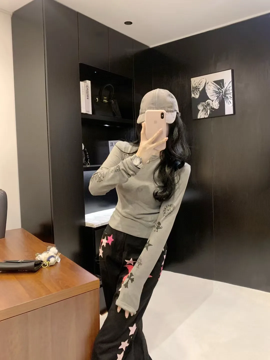 Luxus Chrome Hearts Base Shirt Schwarze Fleece Print Kollektion