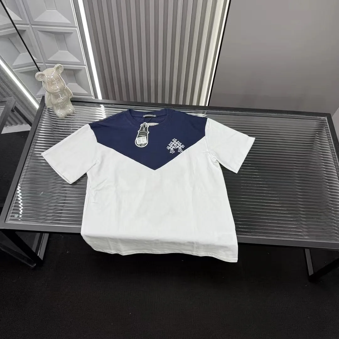 Empfohlene neue Kurzarmshirts mit gesticktem Chrome Hearts-Farbblockkreuz, kleinem Logo und großem Rückenaufnäher. Alle drei Logos sind identisch mit denen auf der offiziellen Website. Zoomen Sie hinein, um Details zu sehen. Foto mit der Originalkamera aufgenommen.