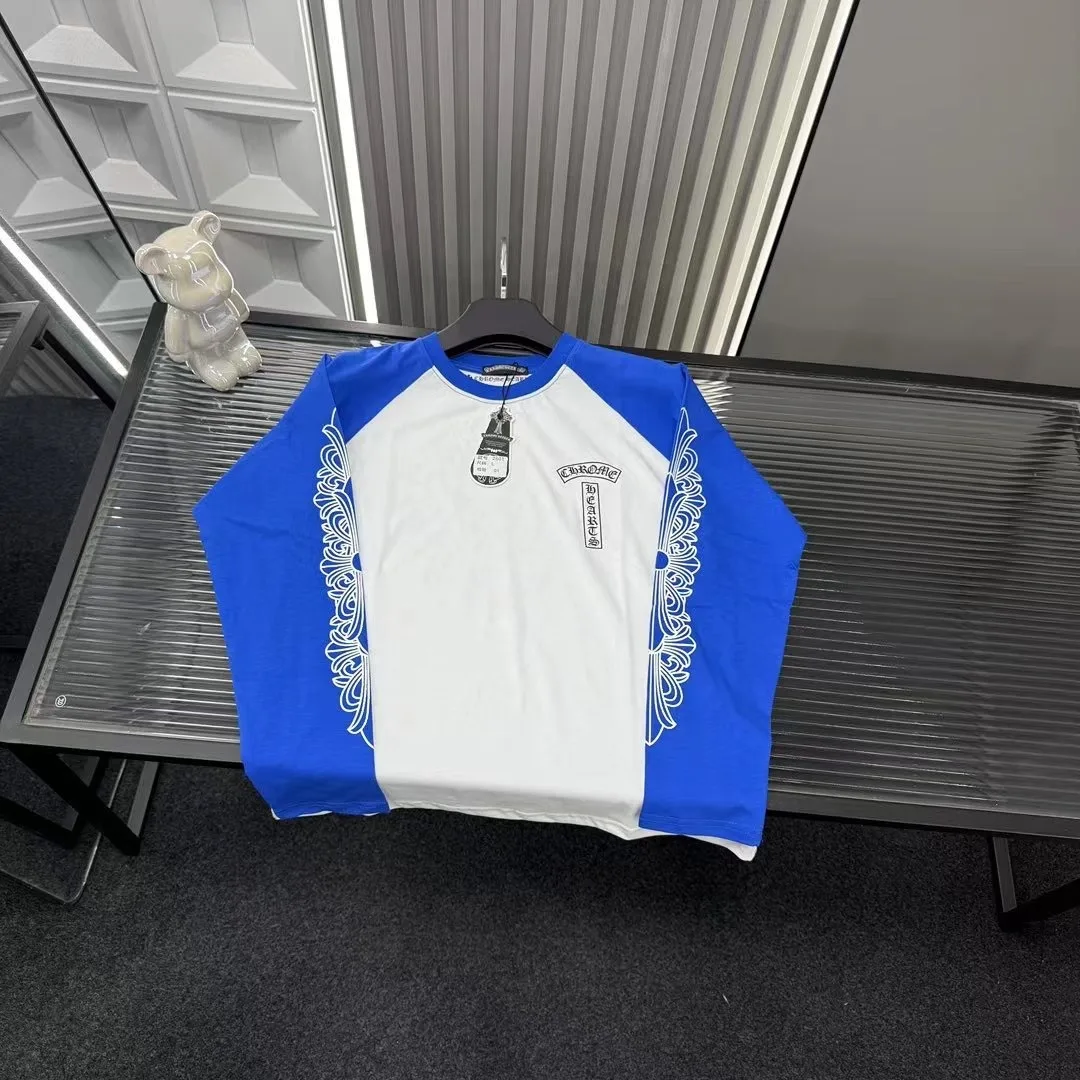Empfohlenes neues Langarmshirt mit Chrome Hearts-Farbblock-Print und Logo mit Kreuzträgern. Alle drei Etiketten sind identisch mit denen auf der offiziellen Website. Zoomen Sie hinein, um Details zu sehen. Foto mit der Originalkamera aufgenommen.