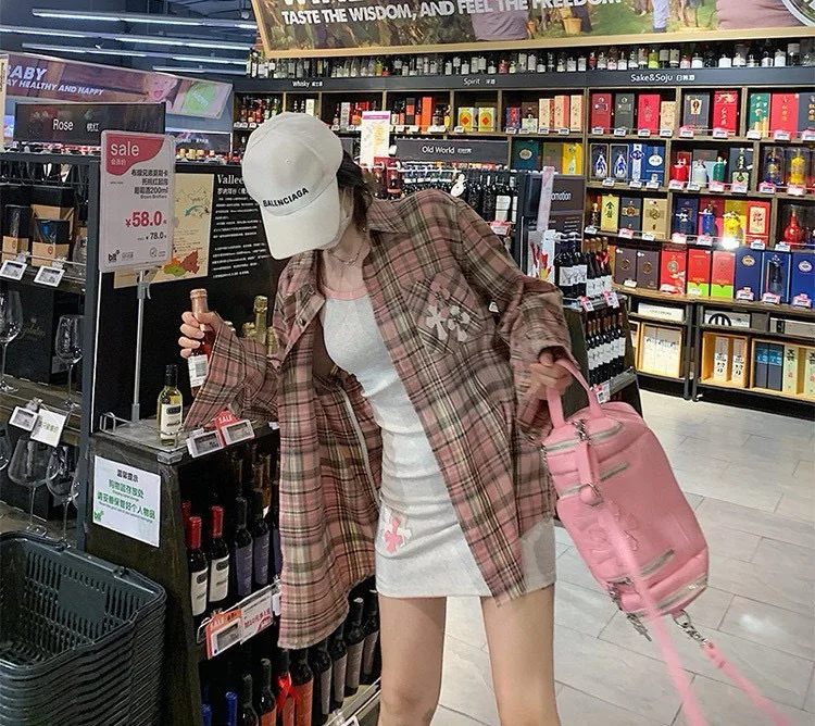 Pink kariertes Hemd von Chrome Hearts mit Kreuzstickerei vorne und hinten und individuell geprägten silbernen Knöpfen