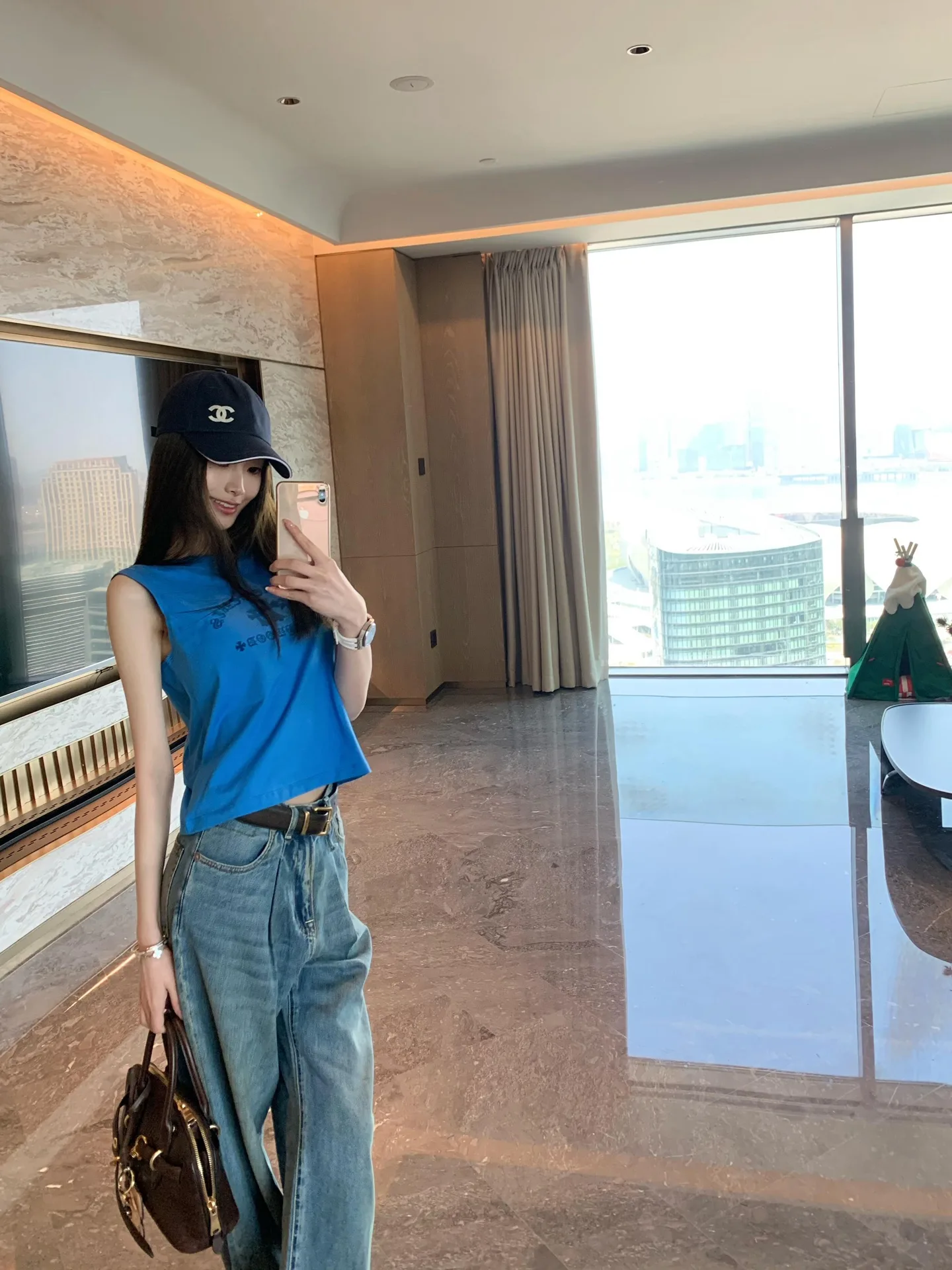 Das beflockte Kreuzdesign auf der Weste ist so koreanisch!