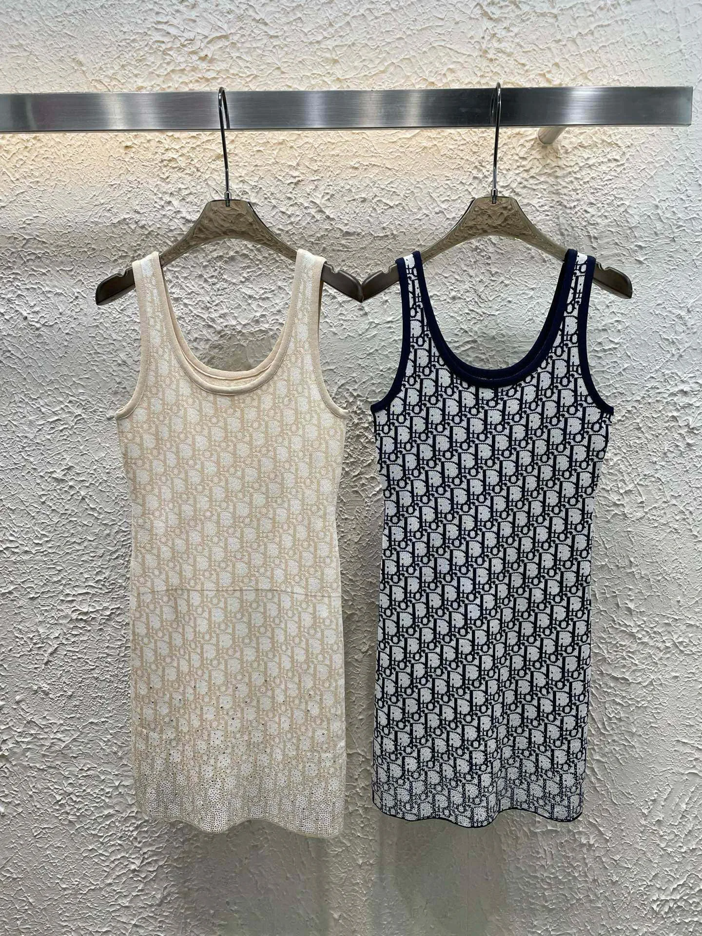 Dior Monogram Jacquard-Strickkleid mit Strasssteinen