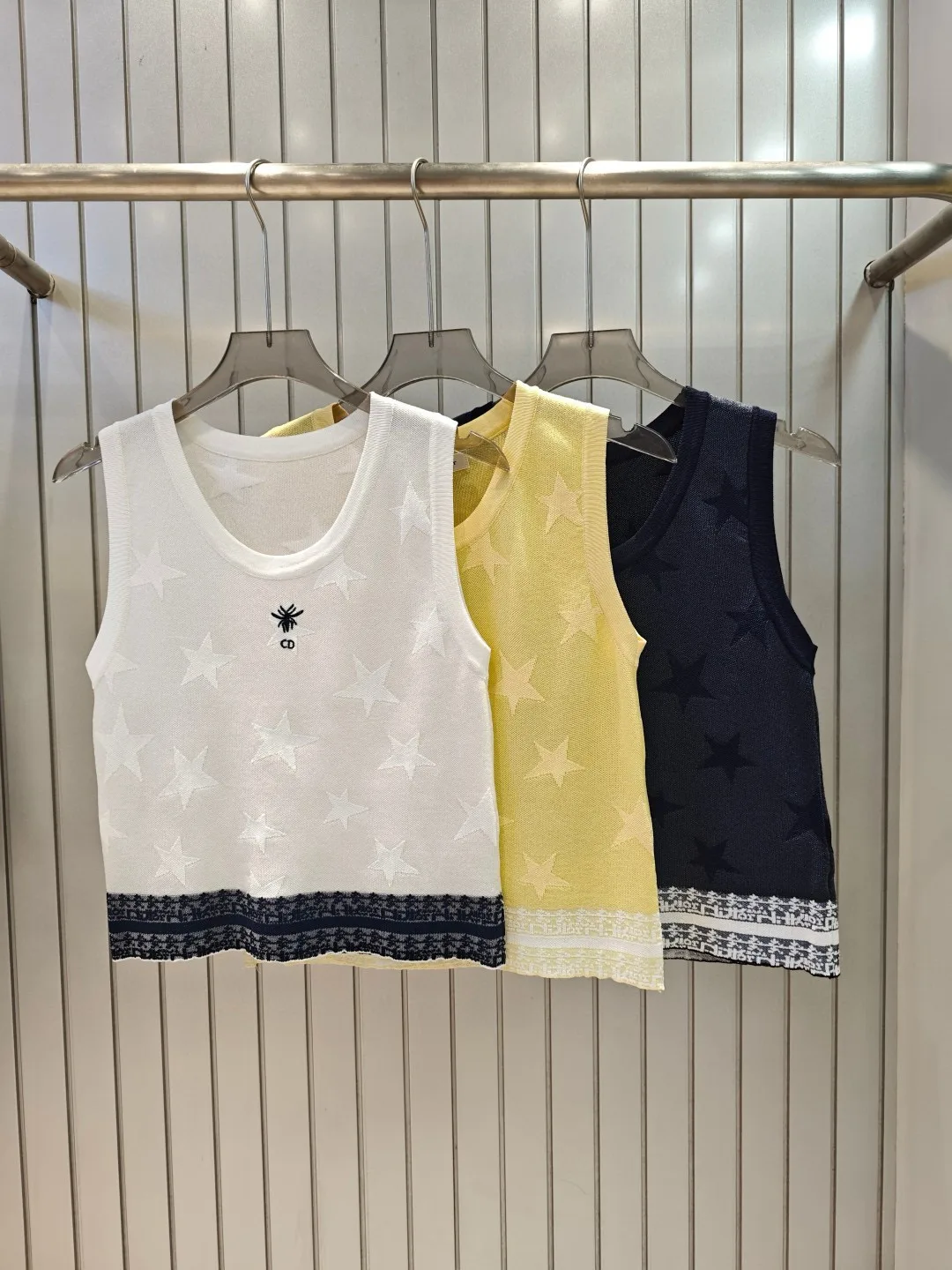 Luxus Dior Weste Gelb Strick Bestickt Luxus