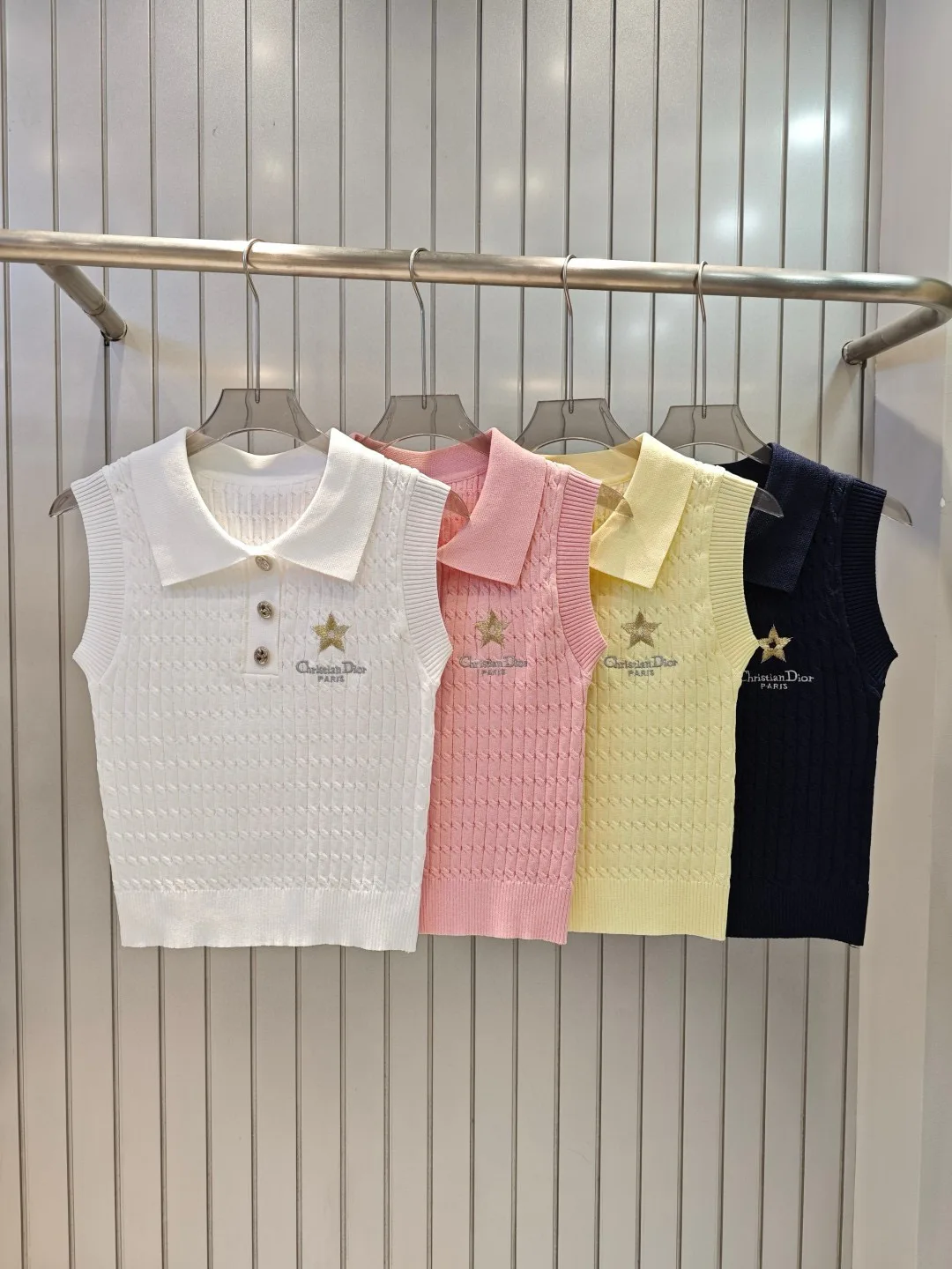Luxus Dior Weste Gelb Strick Bestickt Luxus