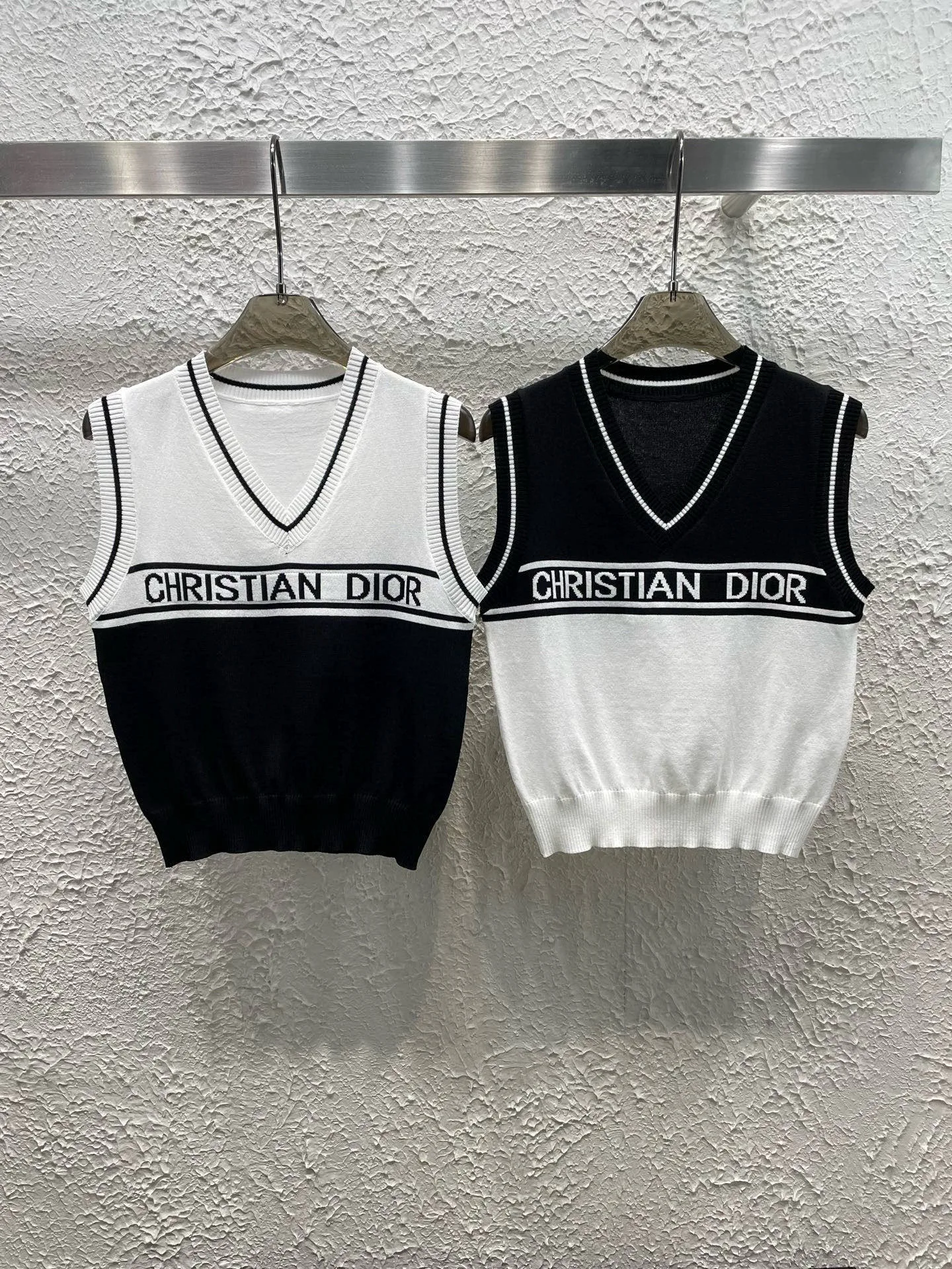 Luxus-Dior-Weste in Weiß mit Monogramm-Strickmuster