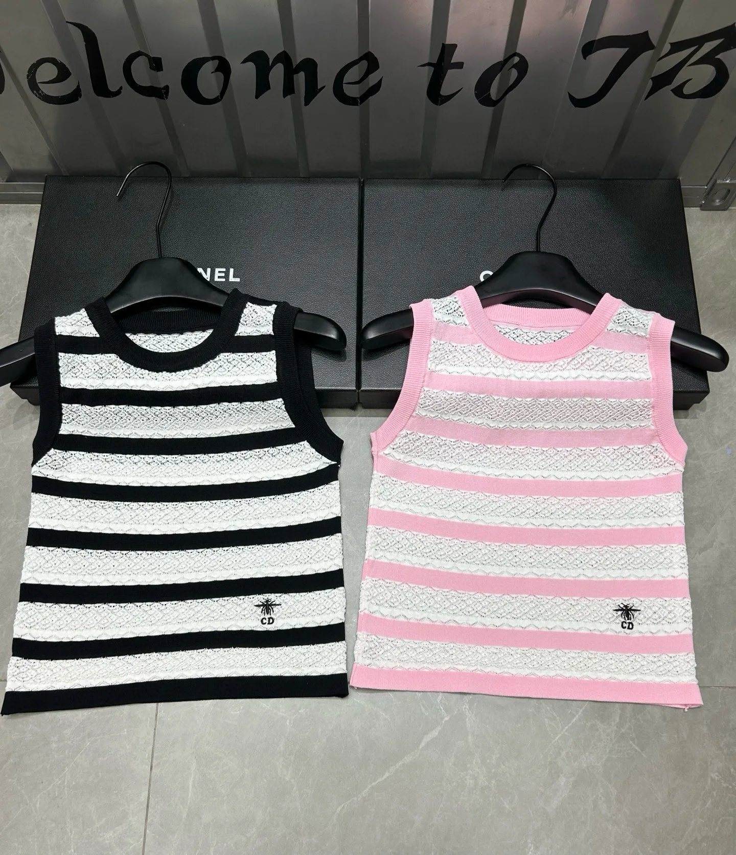 Dior CD Strickweste mit Bienenstickerei und Streifenmuster