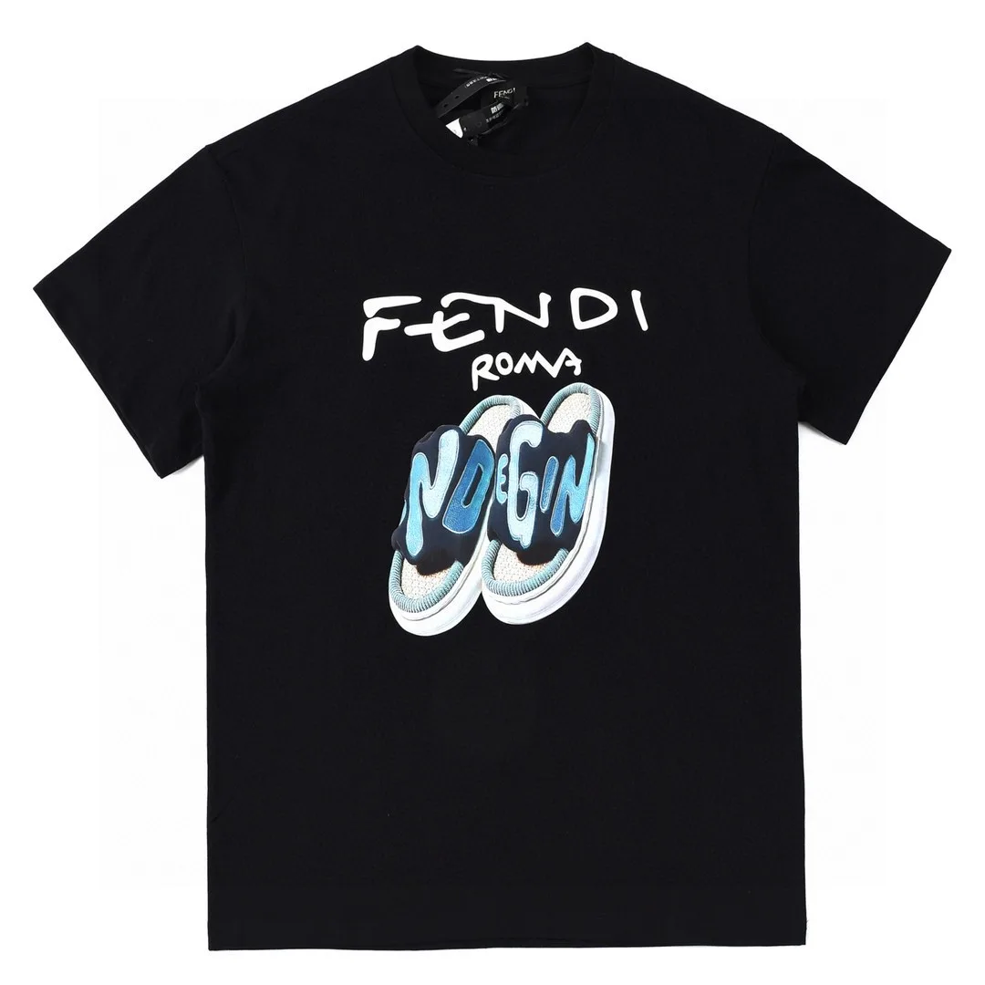 Neues Fendi Slipper-Print und Logo-Rundhals-T-Shirt mit kurzen Ärmeln.