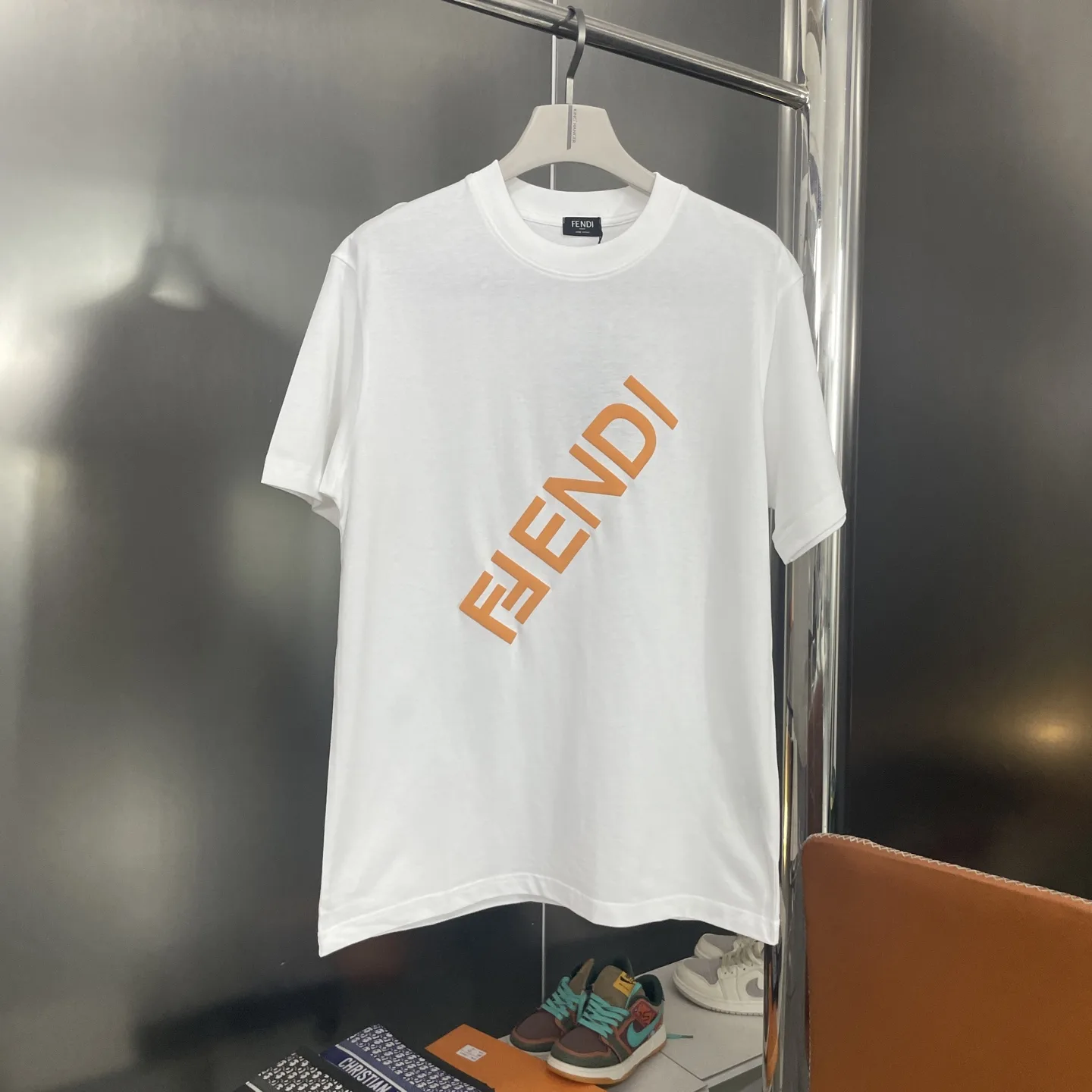 FENDIs neues Kurzarm-T-Shirt mit Rundhalsausschnitt und Buchstaben-Print.
