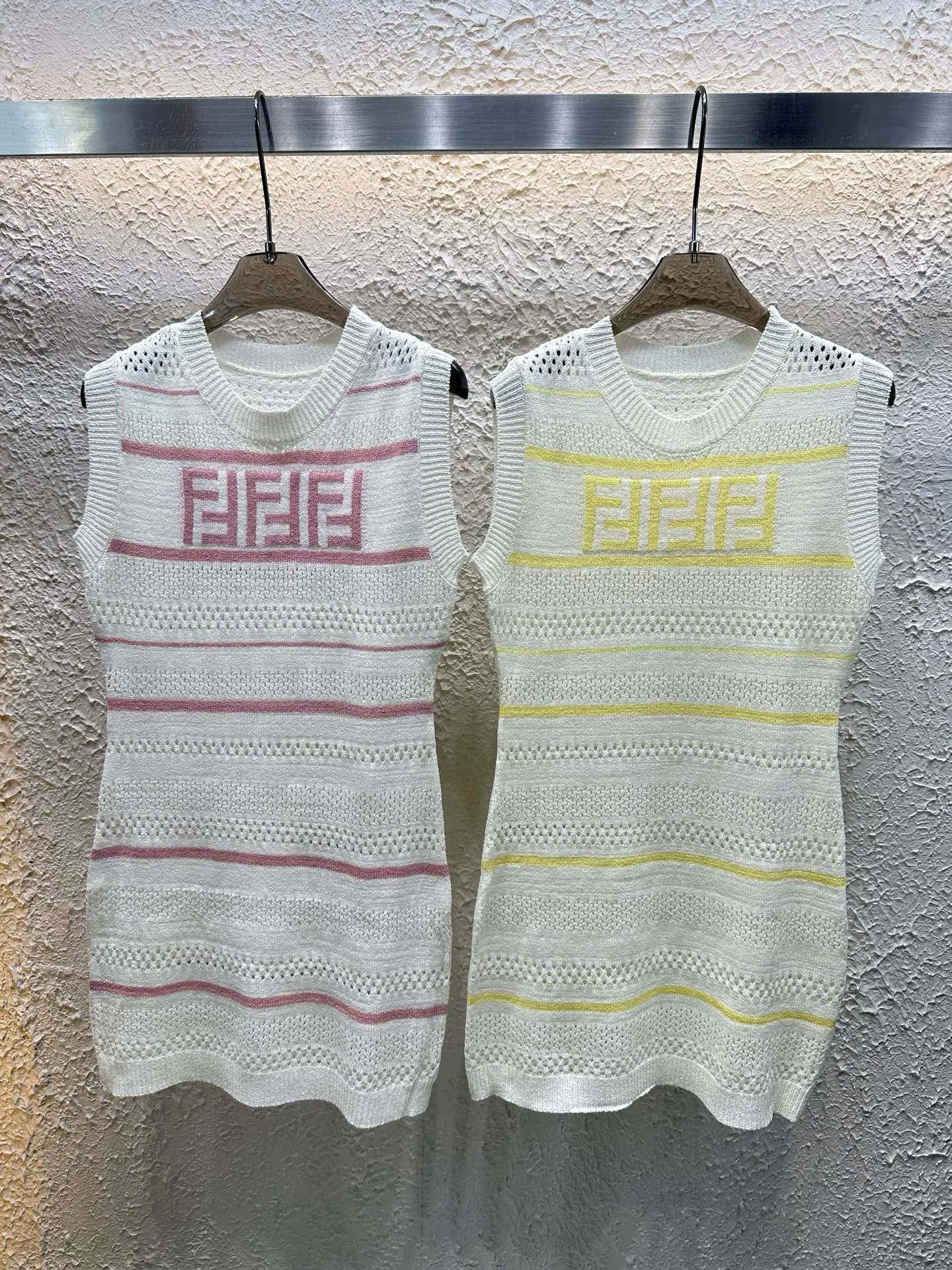 Fendi Double F Jacquard-Trägerkleid mit Streifenmuster und offenem Strickmuster