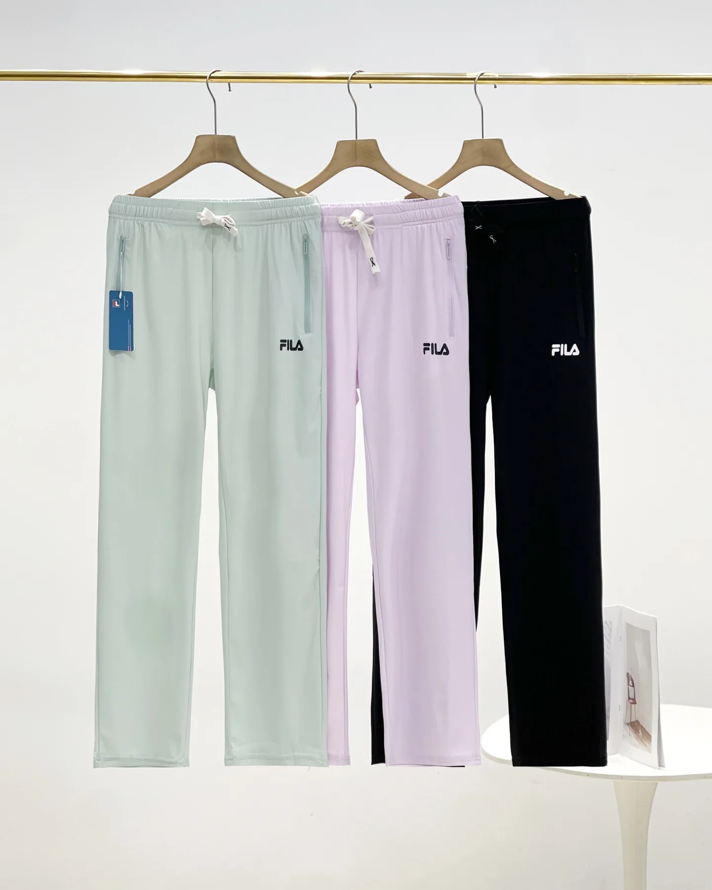Hier sind einige Fotos der offiziellen FILA Damenhose aus schnelltrocknender Ice Silk mit geradem Bein. Diese schnelltrocknende, feuchtigkeitsableitende Stretch-Eisseidenhose in Dopaminfarbe ist ein Must-have für jede Frau und ein absolutes Sommer-Must-have! Sie ist unglaublich schmeichelhaft und bequem!