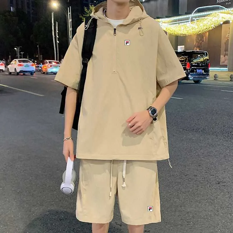 FILAs neues Sommer-Paar-Set aus Ice Silk Kapuzen-Top mit halbem Reißverschluss und kurzen Ärmeln sowie einer kurzen Hose – lässig und stylisch.