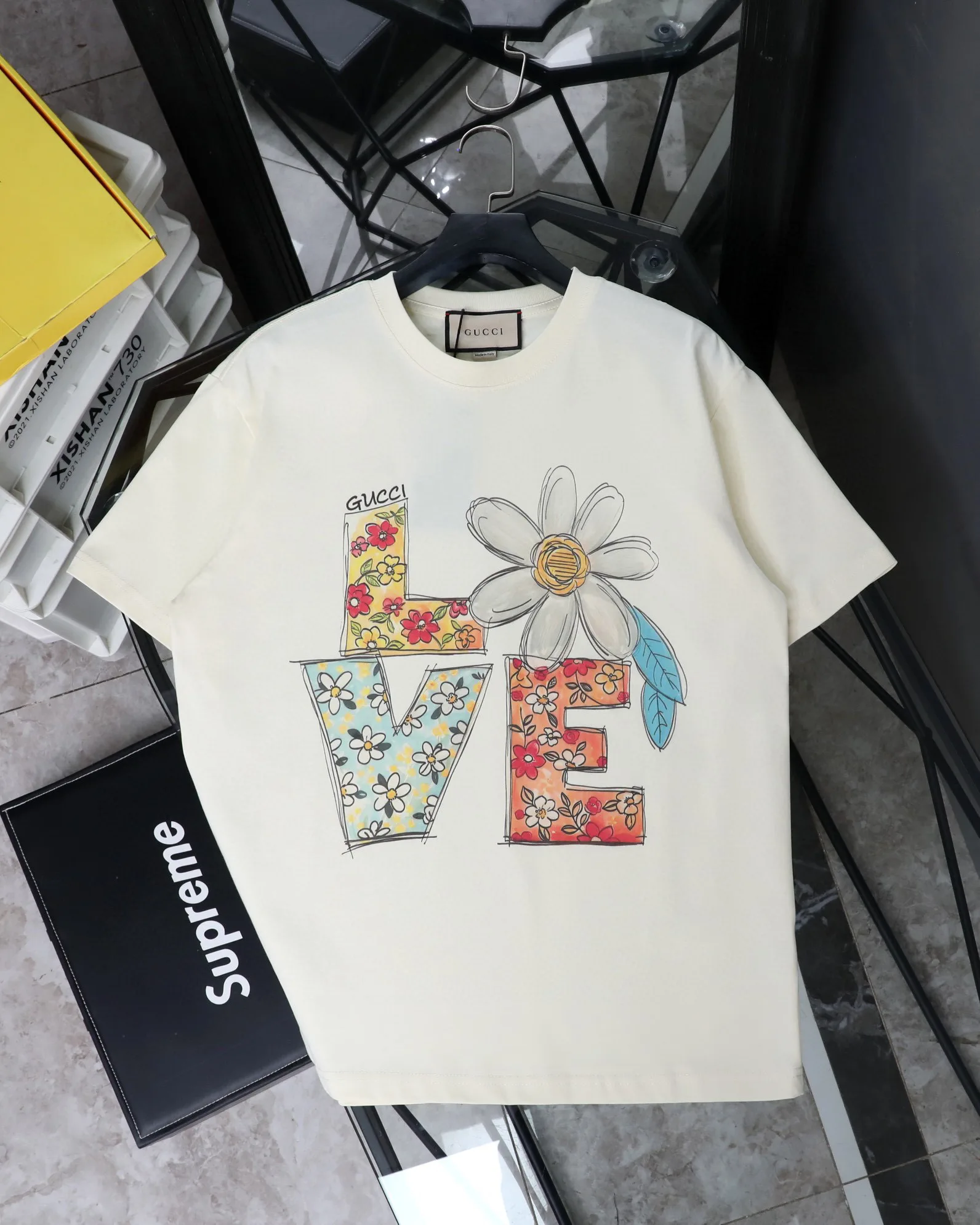 Gucci/GUCCI Kurzarm-T-Shirt mit Rundhalsausschnitt und Blumenmuster