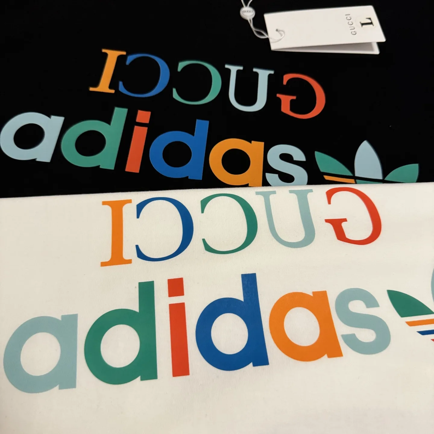 Guccis neuer adidas Co-Branding-Monogramm-Logo-Print ist ein lässiges und vielseitiges Kurzarm-T-Shirt für Paare.