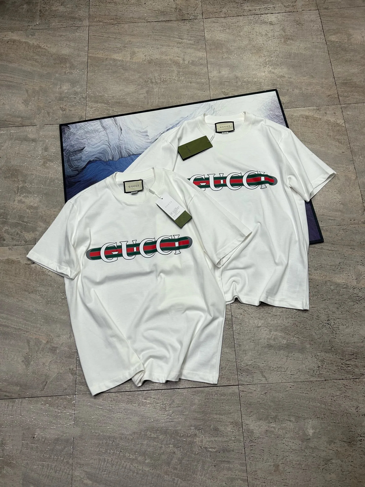 GUCCI SS Brustgurt mit G-Logo-Print, kurzärmliges Rundhals-T-Shirt für Paare