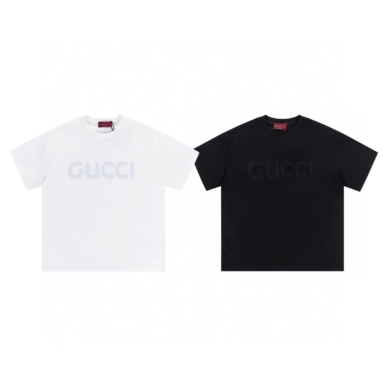 GUCCI Klassisches, farblich abgestimmtes, versteckt gesticktes Logo und Schriftzug, Kurzarm-T-Shirt mit Rundhalsausschnitt und Rundhalsausschnitt – Premium Originalversion