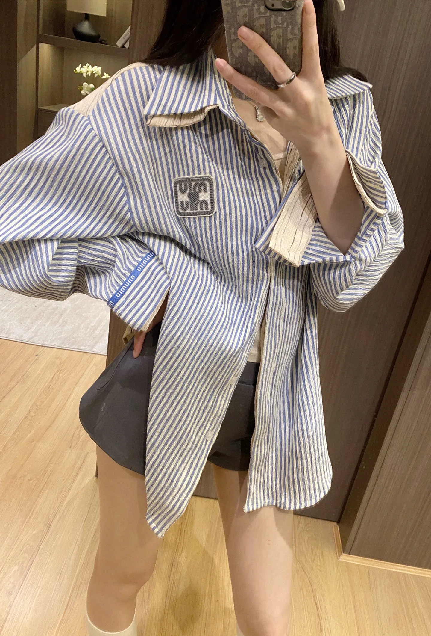 Miumiu Miu Miu Herz-Stickerei-Abzeichen mit Manschetten und zweiteiligem Streifenhemd