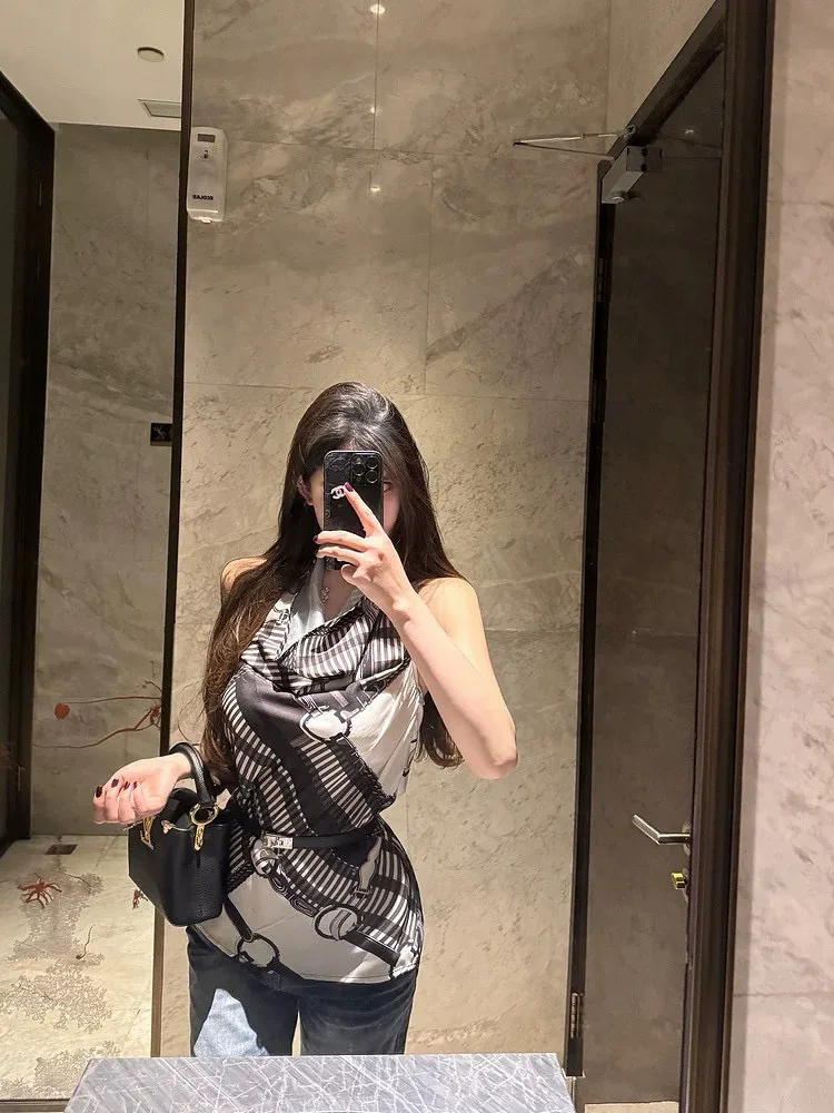 Hermès Neckholder-Tanktop aus Twill mit Gürtel, rückenfrei