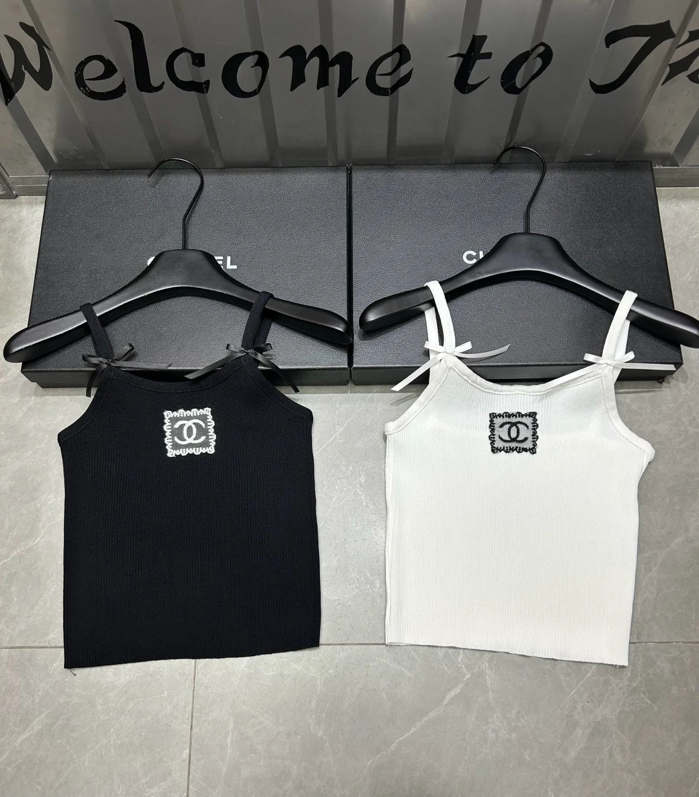 Chanel Doppel-C-Strick-Camisole mit Spitzenschleife und Stickerei