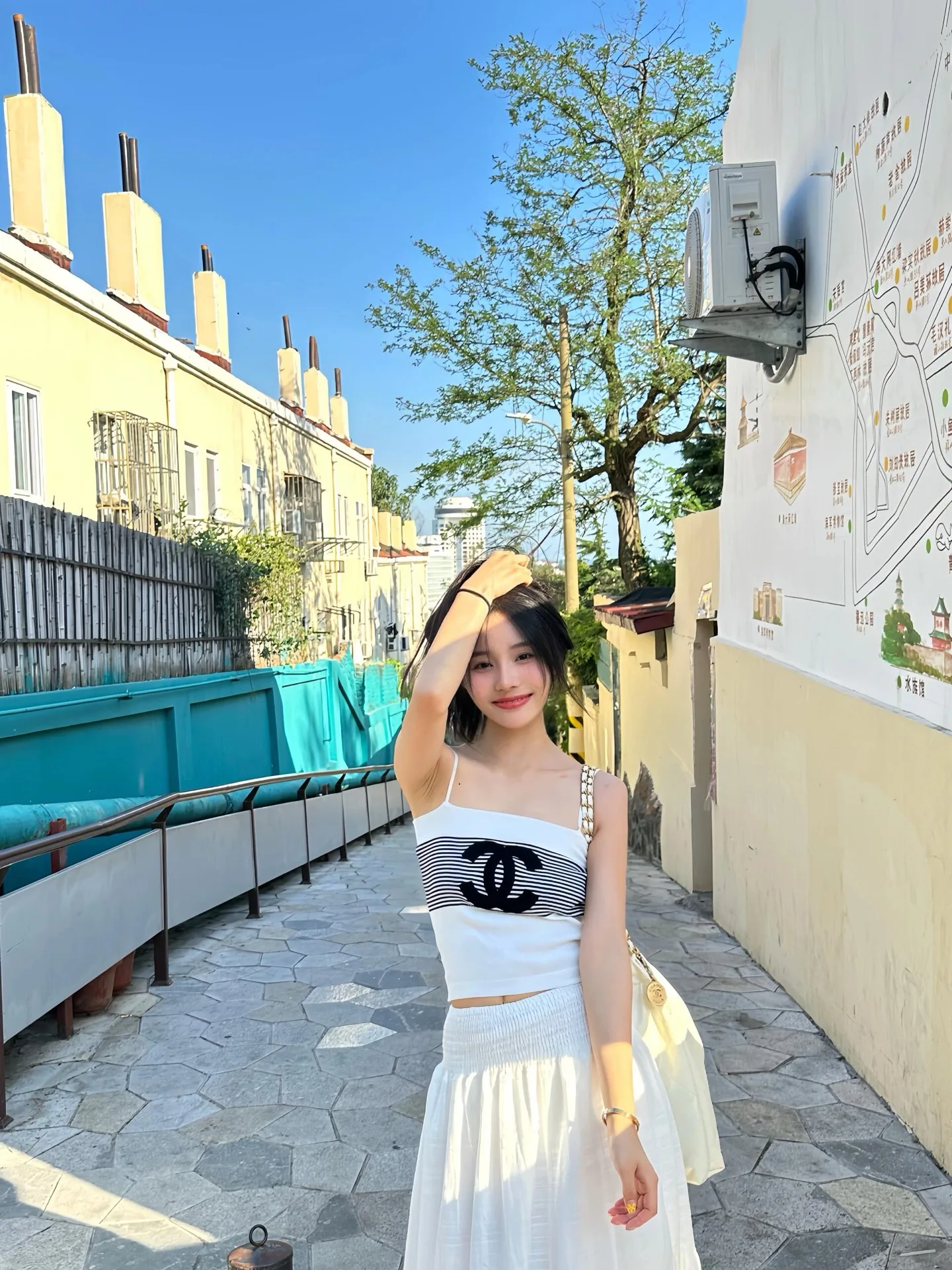 Luxus-Hosenträger von Chanel, weiß, gestrickt, bestickt