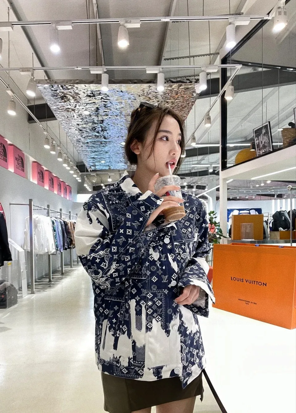 Die neue Jeansjacke mit Paisley-Batik-Print von Louis Vuitton FW für den Frühherbst. Diese auffällige neue LV-Paisley-Kollektion besticht durch eine Variante des Monogramm-Prints, die ihre einzigartigen Elemente und ihren Stil unterstreicht.