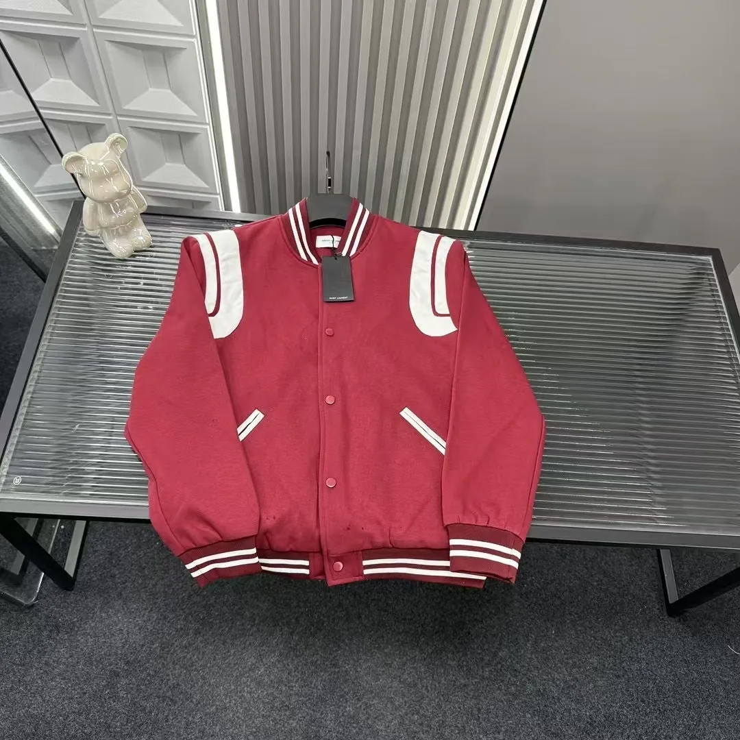 Empfohlene Oberbekleidung für den Frühherbst: Saint Laurents Baseballjacke mit Stehkragen und Farbblockdesign. Die Jacke trägt alle drei Etiketten, passend zur offiziellen Website. Zoomen Sie hinein, um Details zu sehen. Foto mit der Originalkamera aufgenommen.