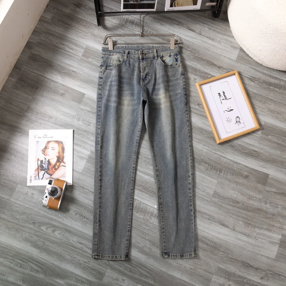 Louis Vuitton SS Jeans, neue Frühjahrskollektion, aus der Donkey Embroidery Kollektion. Ich liebe diese Jeans mit extra Stretch … schwere V-Den Jeans … handbemalt. Einzigartige Farbe und Design, unregelmäßige Gesäßtaschenmuster und erstklassige Verarbeitung.