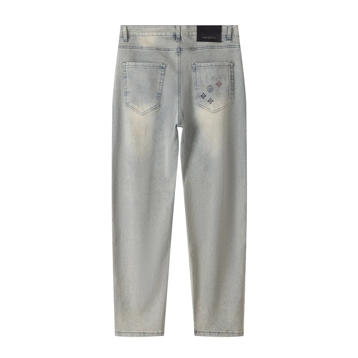 LV Louis Vuitton Herrenjeans Frühjahr/Sommer, Originalstoff, Originalwaschung! Diese Jeans aus importiertem, gewaschenem Stretchstoff ist aufwendig verarbeitet. Ein paar zusätzliche Sekunden im Waschgang erzeugen eine völlig andere Farbe, wodurch sie noch wertvoller, außergewöhnlich langlebig und geruchsabweisend wird. Sie besteht aus hochwertigem Stretch-Denim, Patches aus echtem Leder und maßgefertigten Metallakzenten und verleiht der Jeans eine einzigartige und originelle Silhouette! Originalbeschläge und -accessoires sorgen für eine perfekte Passform, Komfort und Atmungsaktivität sowie Premium-Qualität. Sie sehen unglaublich stylisch aus und überzeugen durch erstklassige Designerqualität.