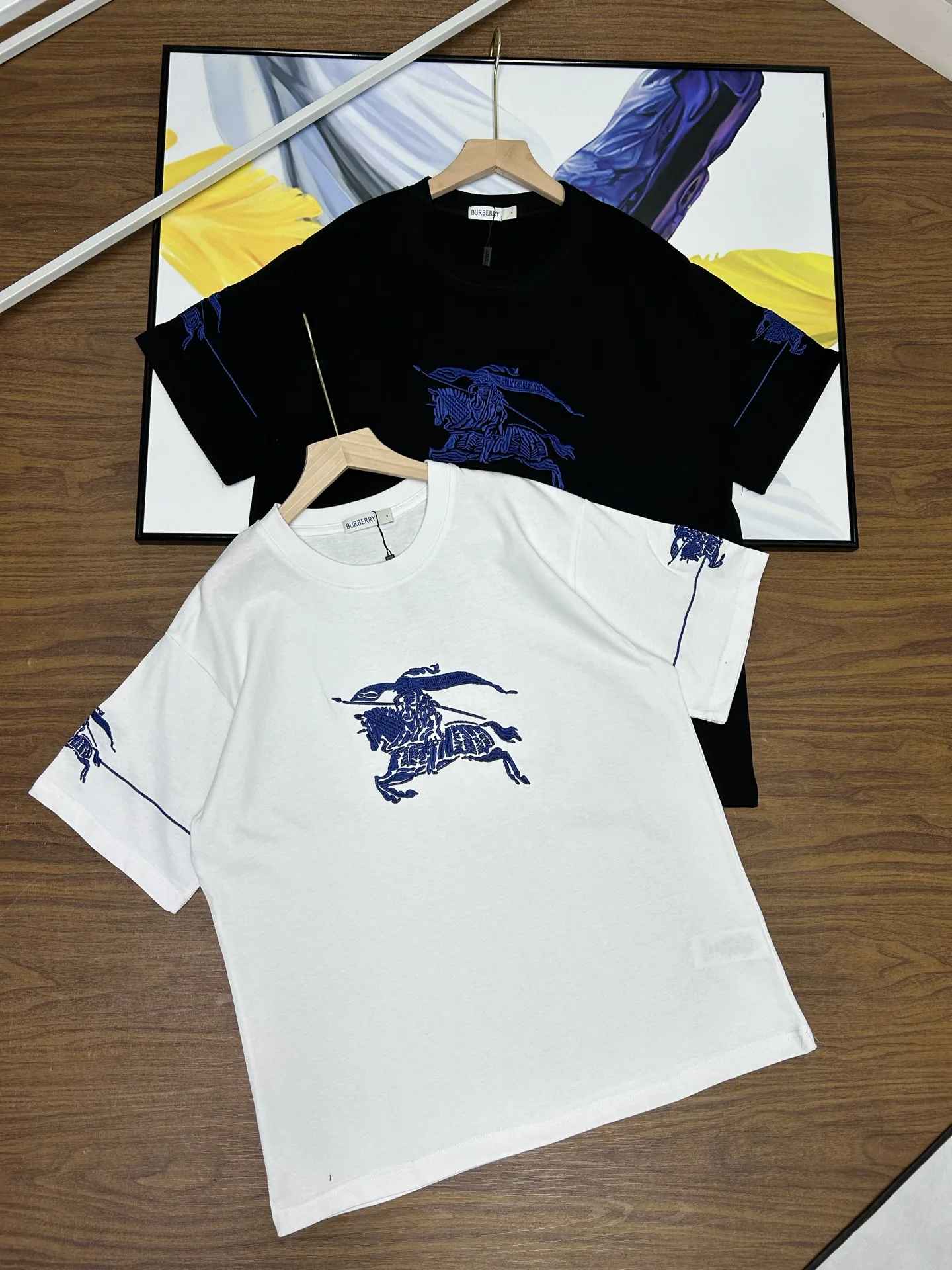 Das zweifarbige, dreidimensionale Burberry-Emblem ziert die aufwendig bestickten Kurzarm-T-Shirts mit über einer Million Stichen strapazierfähiger Schlachtross-Stickerei auf Brust und Ärmeln für einen edlen Look. Der Body besteht aus 100 % gekämmter, leinwandgewebter Baumwolle, vorgewaschen und vorgewaschen für einlaufsichere Passform. Halsausschnitt, Saum und Schultern sind mit modernster segmentierter Dreinadel-Einfädeltechnik verarbeitet, was die hochwertige Verarbeitung unterstreicht. Ein Must-have für Sie!