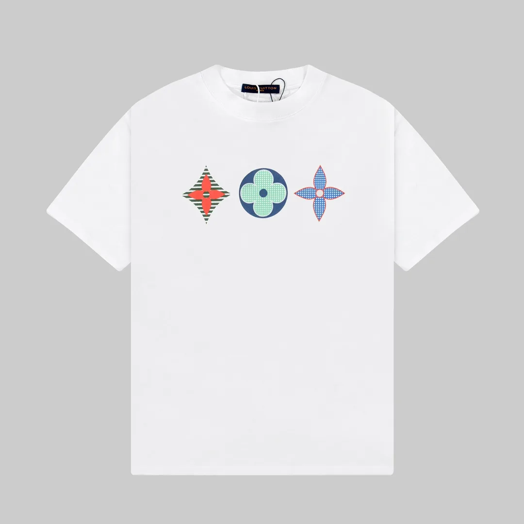 (Spitzenqualität, höchste Qualität) LV Louis Vuitton Classic Kurzarm-T-Shirt mit Drei-Blumen-Print und Schriftzug