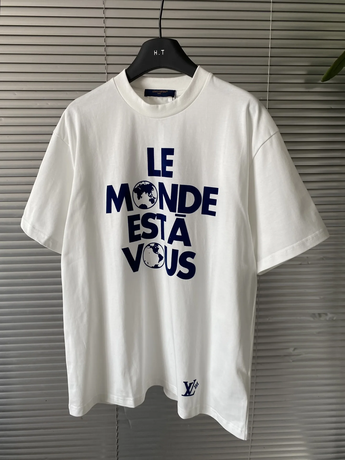 Hochwertiges Louis Vuitton LV SS Herren-T-Shirt mit beflocktem Buchstaben-Print aus der Frühjahr/Sommer-Kollektion „Earth“.