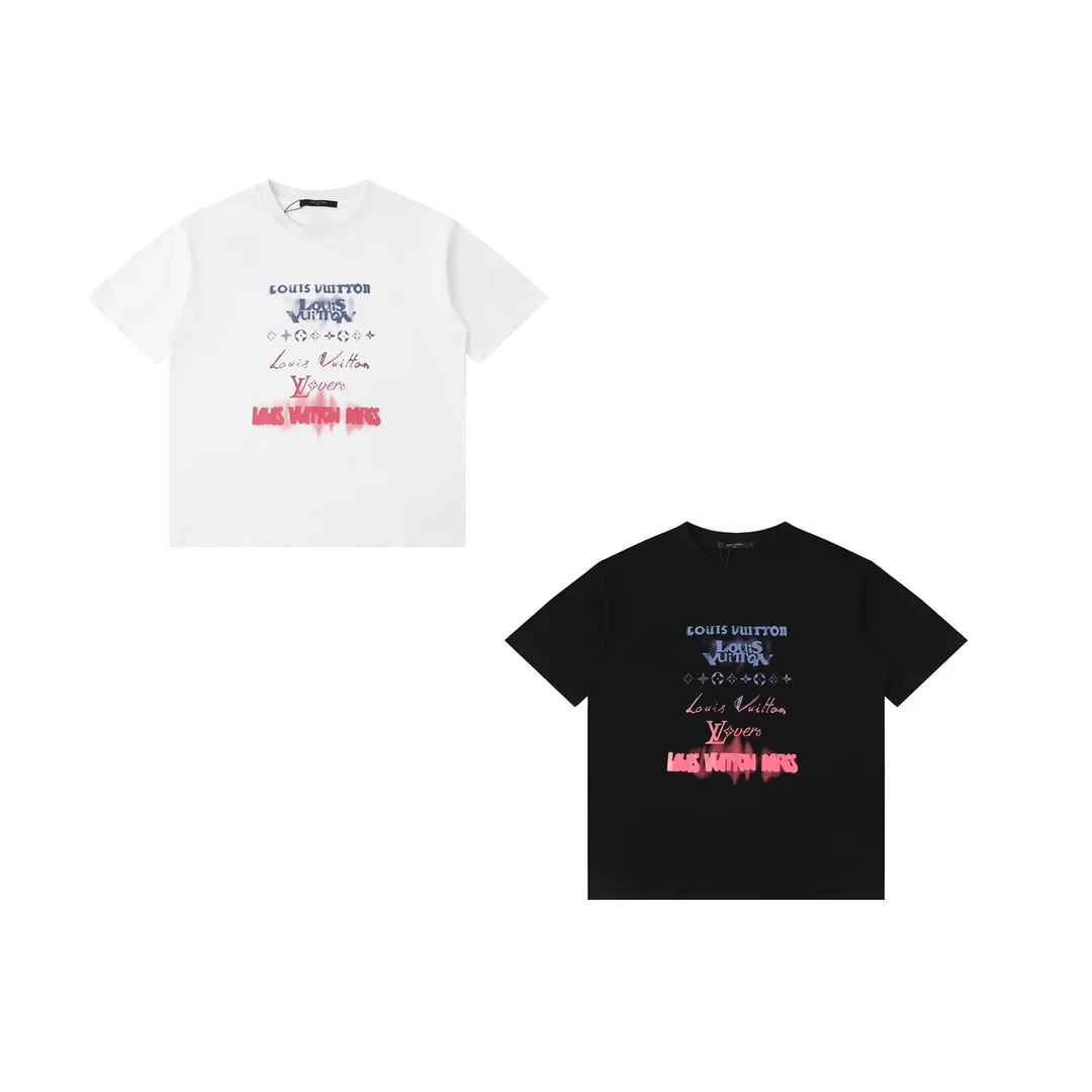 Hochwertiges Kurzarmhemd von Louis Vuitton/Louis Vuitton LV mit unscharfem Tintenstrahldruck.