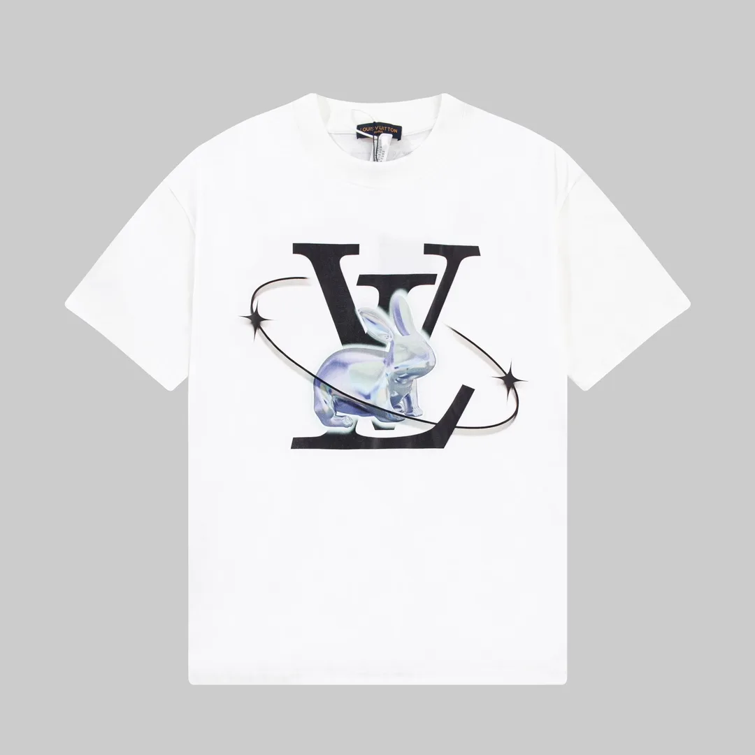 Louis Vuitton SS Year of the Rabbit Kollektion – Klassisches Kurzarm-T-Shirt mit silbernem Ring und Jade-Kaninchen-Print.