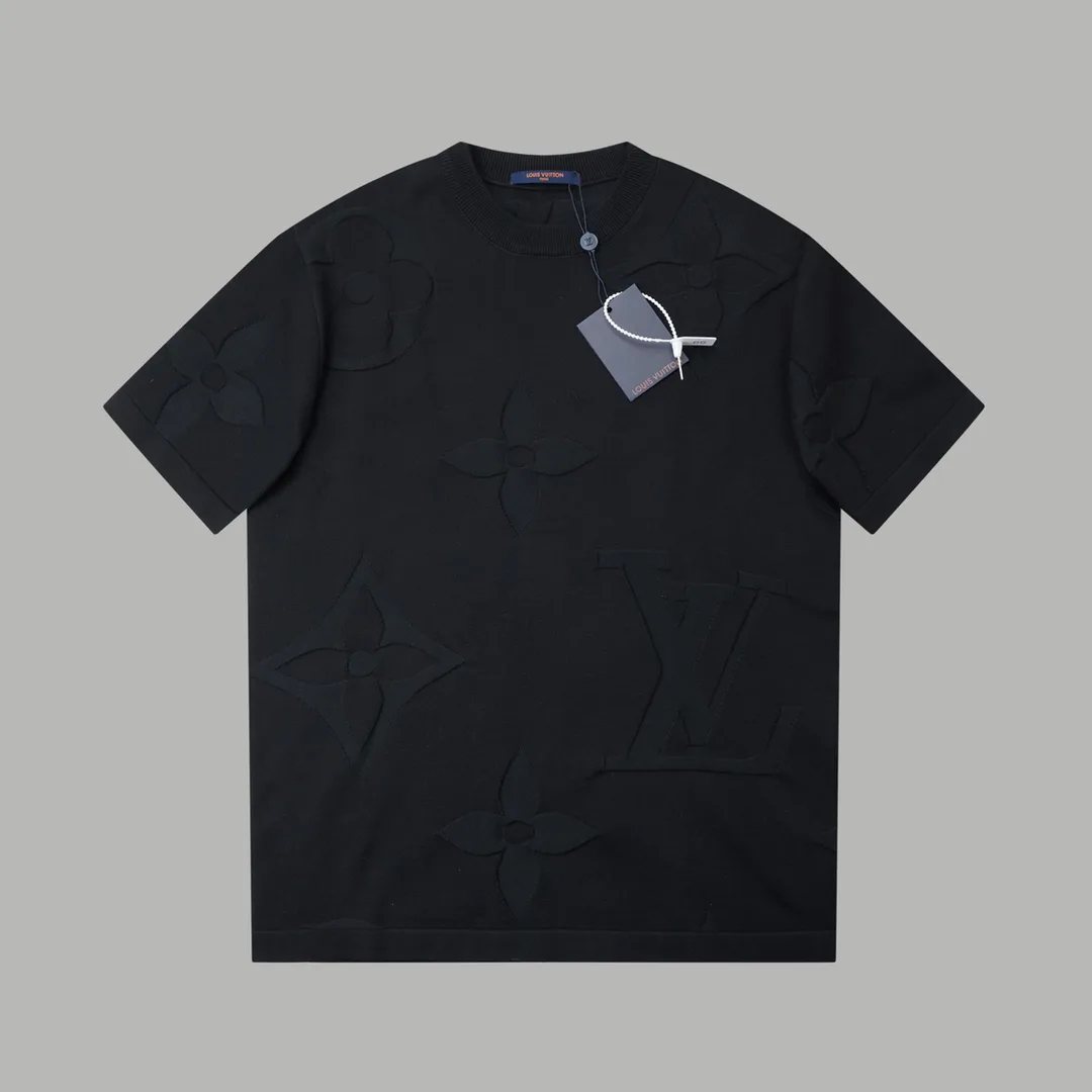 LOUIS VUITTON Jacquard-Strickpullover mit großem Logo, kurzärmlig
