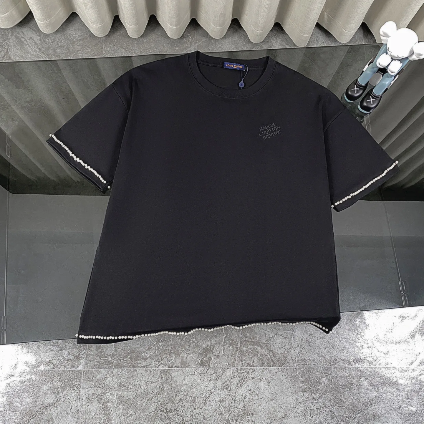 Louis Vuitton Rundhals-Strick-T-Shirt mit Perlenstickerei