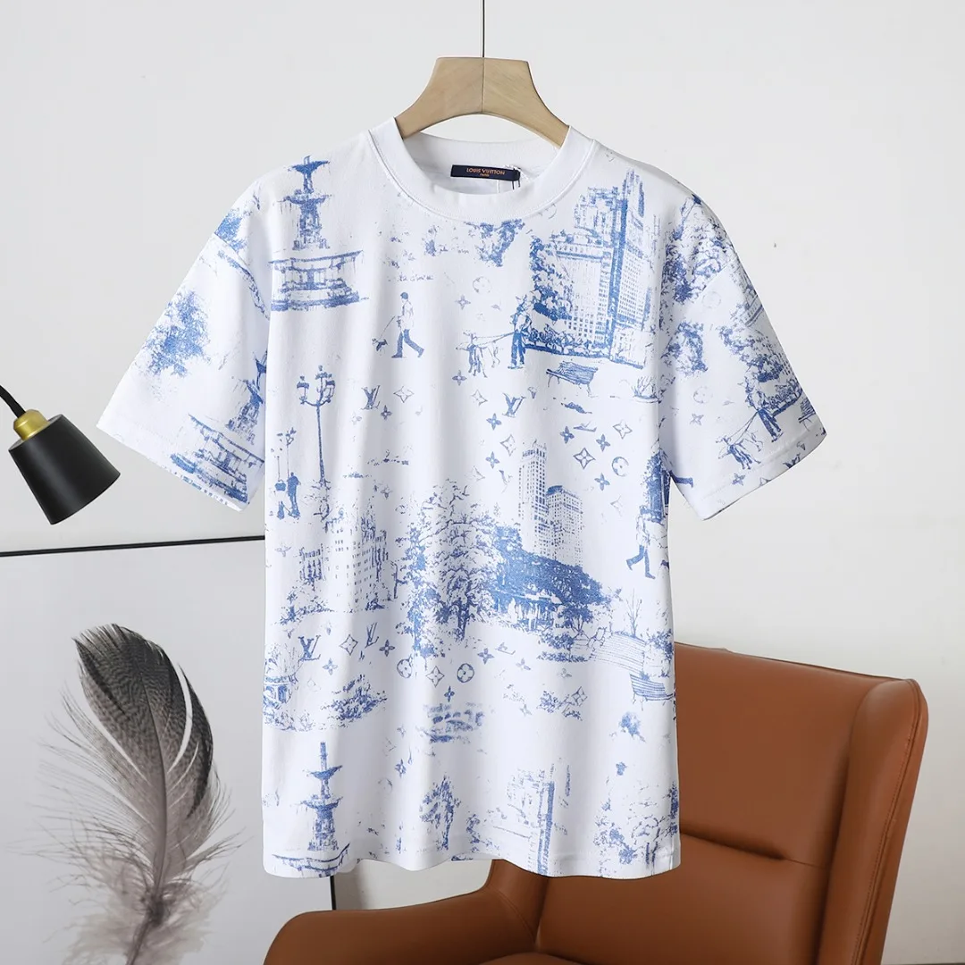 Luxus Louis Vuitton Kurzarm Weiß Baumwolle Monogramm Stil