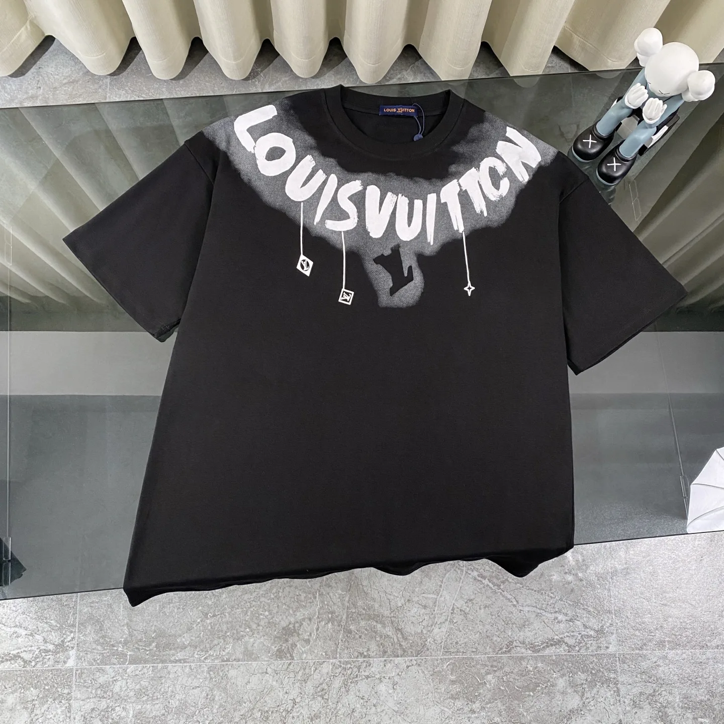 LOUIS VUITTON/LVs neues klassisches T-Shirt mit Rundhalsausschnitt und Graffiti-Wolken-Schriftzug in der Schulterpartie.