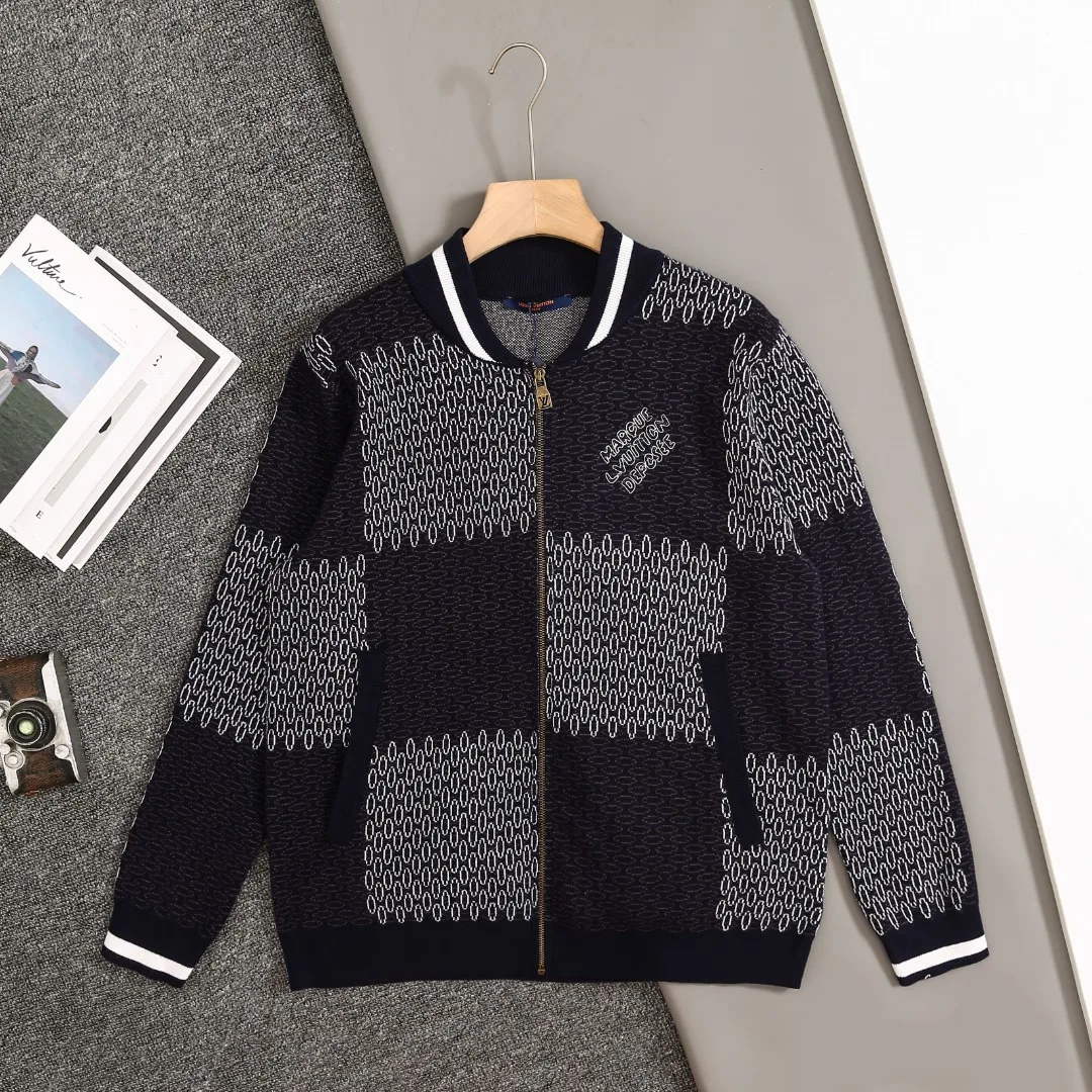Louis Vuitton LV FW Neue Kollektion Checkerboard-Cardigan mit Reißverschluss.