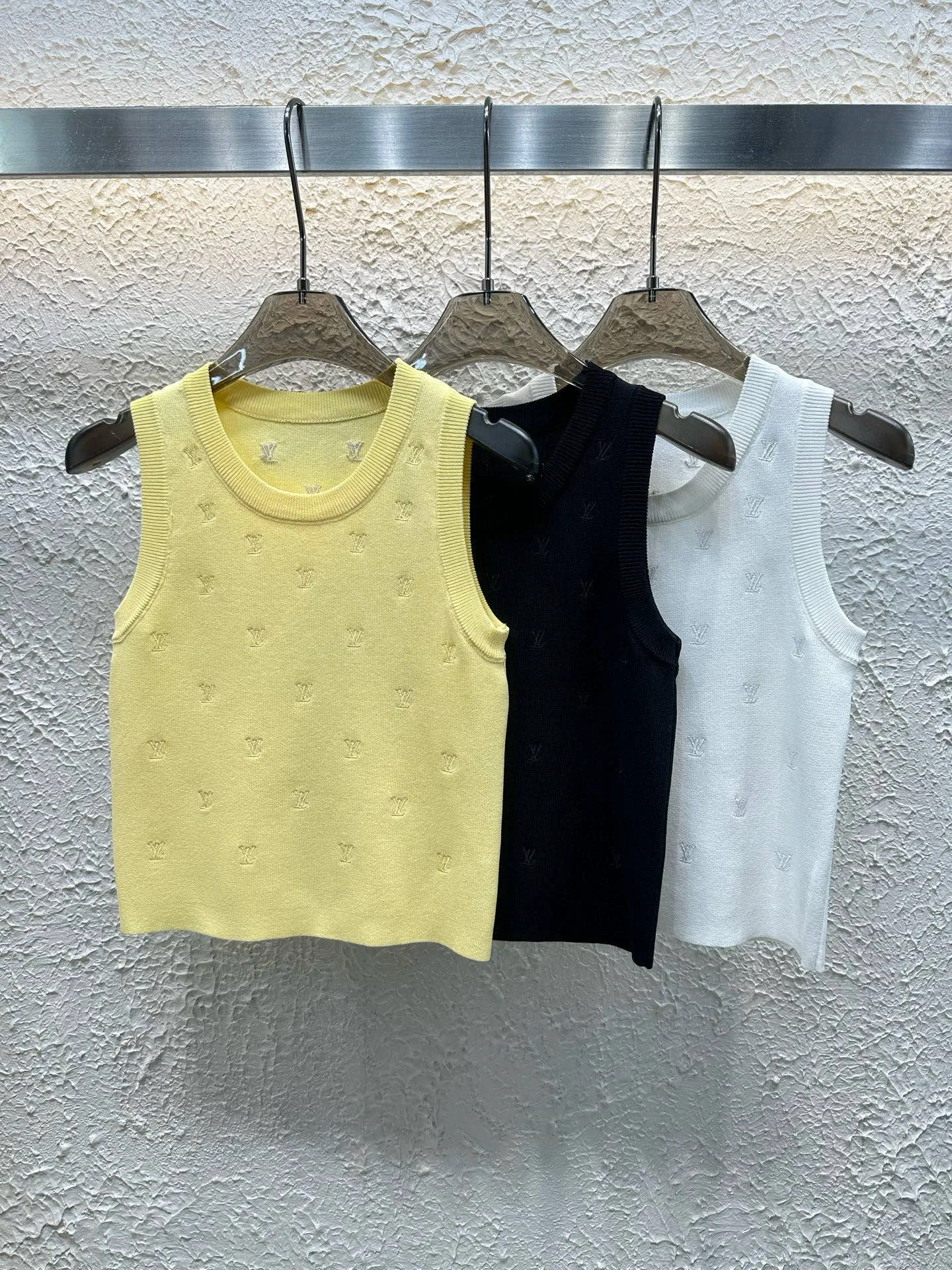 Luxus Louis Vuitton Weste Gelb Strick Bestickt Luxus