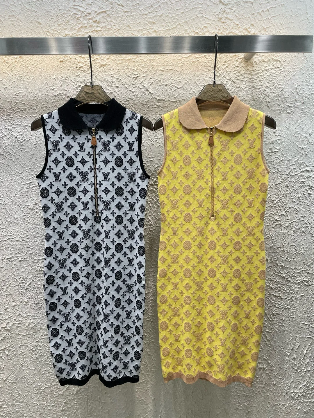 Louis Vuitton LV Donkey’s Old Fashioned Strickwestenkleid mit vierblättrigem Kleeblatt, Jacquard-Revers und Reißverschluss