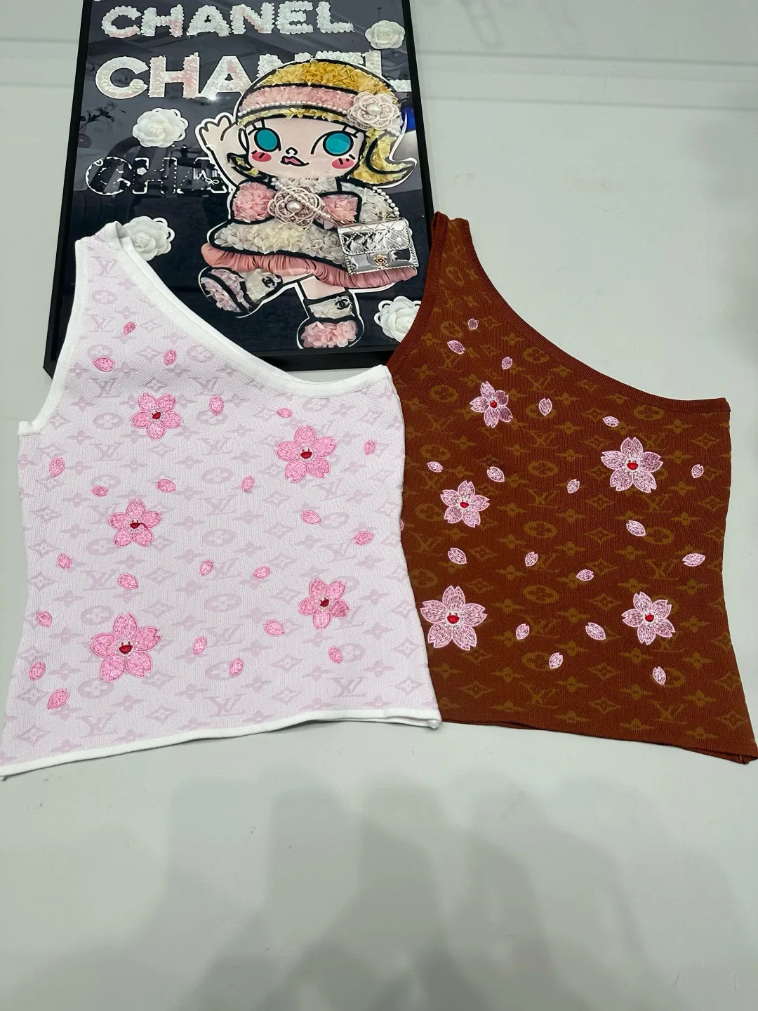 Louis Vuitton LV Off-Shoulder-Strickweste mit Kleeblatt-Jacquard und floraler Stickerei