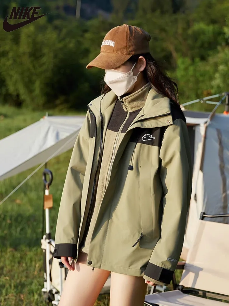 Neuer Stil von Nike im Herbst und Winter, Nike Unisex-Samtjacke mit verdickter Kapuze für die Freizeit im Freien, farblich abgestimmte warme Drei-in-Eins-Zweiteilerjacke, dicker Mantel für Outdoor-Bergsteigen für Paare, Baumwollmantel. Baumwollmantel!