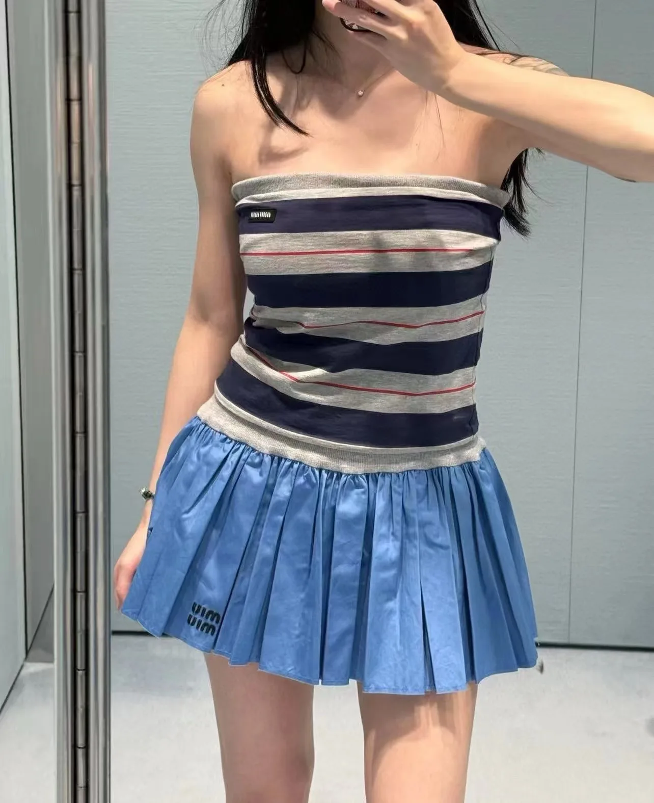 Luxus Miu Miu Faltenrock Blau Bestickt Luxus